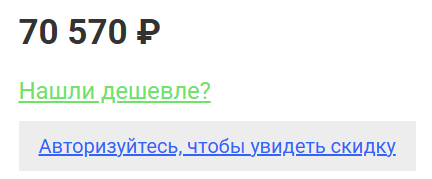 Персональные скидки доступны на тех товарах, в которых указана клубная цена или написано "Авторизуйтесь, чтобы увидеть скидку".