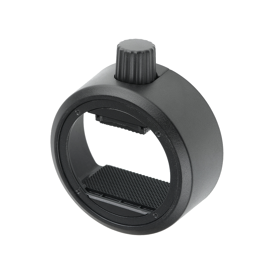 Резиновые прокладки с сетчатым покрытием на внутренних поверхностях адаптера обеспечивают надежный захват без царапин, а винт сверху помогает плотно установить адаптер на вспышках разных размеров.