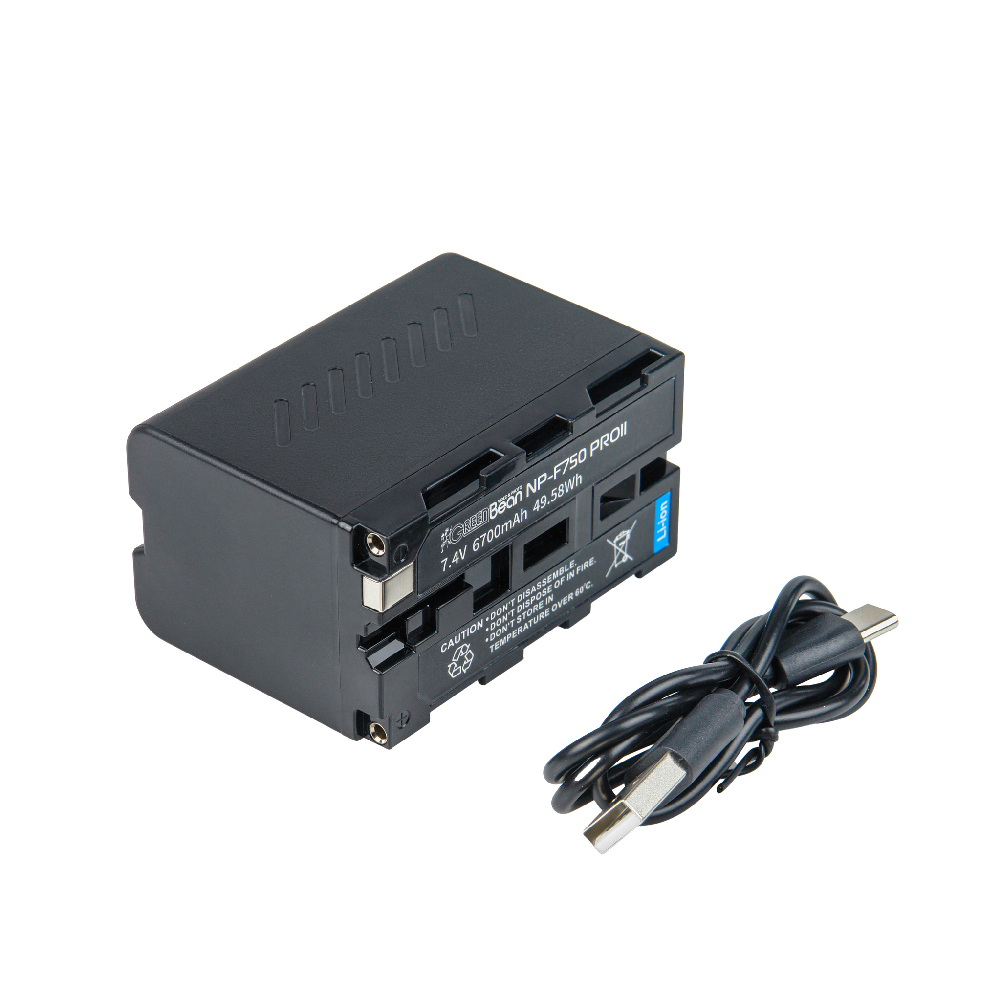 Аккумулятор может заряжаться с помощью зарядного устройства для Sony NP-F или от источника постоянного тока 5В 2А через USB-C. Количество циклов перезаряда не менее 300.