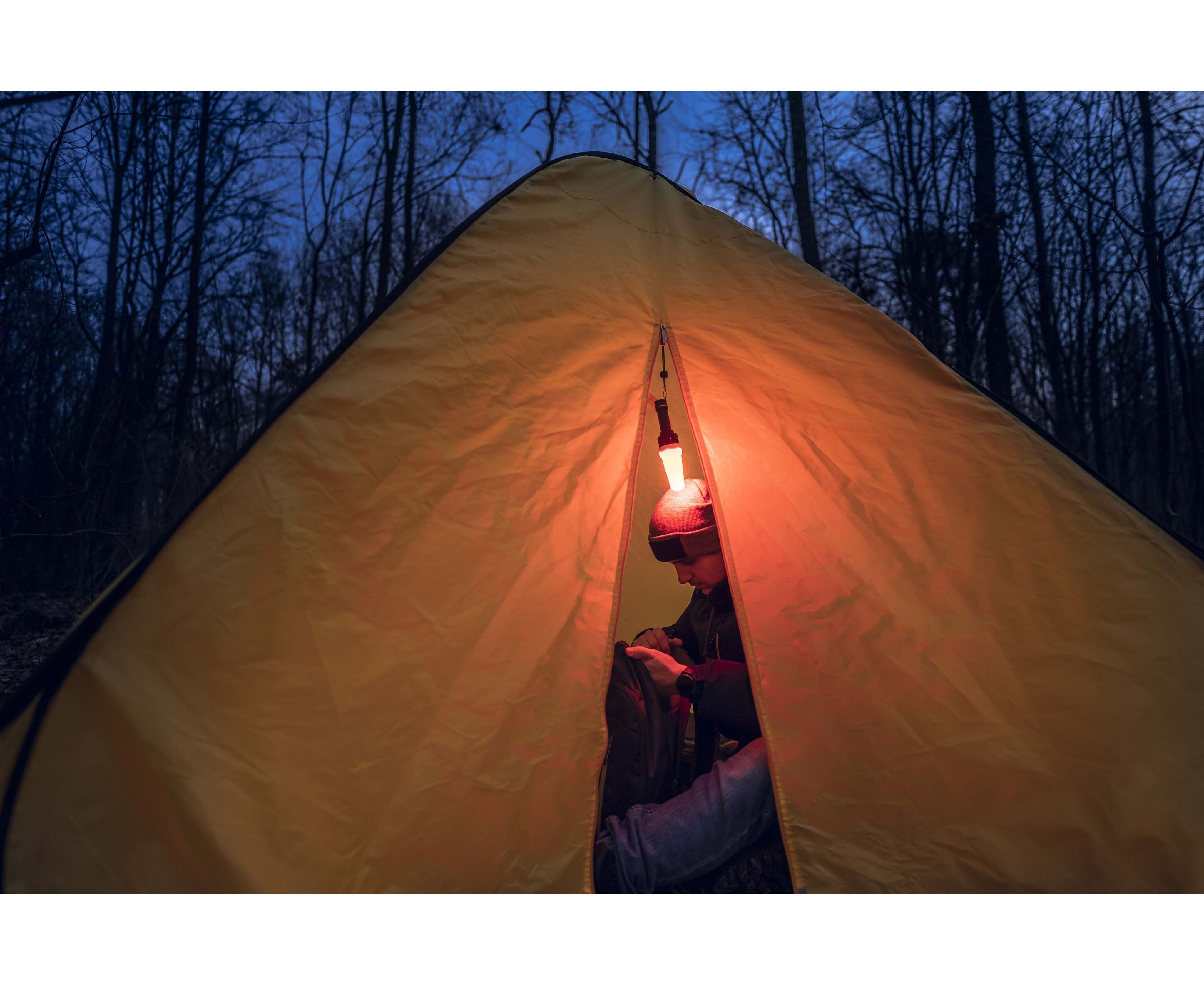 В комплект входит специально разработанный белый силиконовый конус, который обеспечивает всенаправленный свет, видимый со всех сторон. Такой рассеянный свет можно использовать для освещения палаточного лагеря во время выезда на природу: Bear WRG крепится к ветке дерева или к крюку под потолком палатки с помощью прочного ремешка. В фонаре также присутствует режим Маячок каждого цвета света для подачи сигналов с силиконовым конусом или без него при регулировании дорожного движения или в аварийной ситуации.