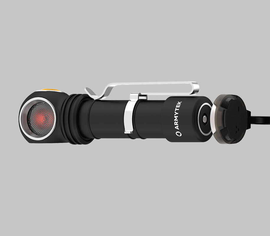 5 режимов яркости для каждого цвета, простое управление одной кнопкой и двойной клик для переключения между белым и красным светом.