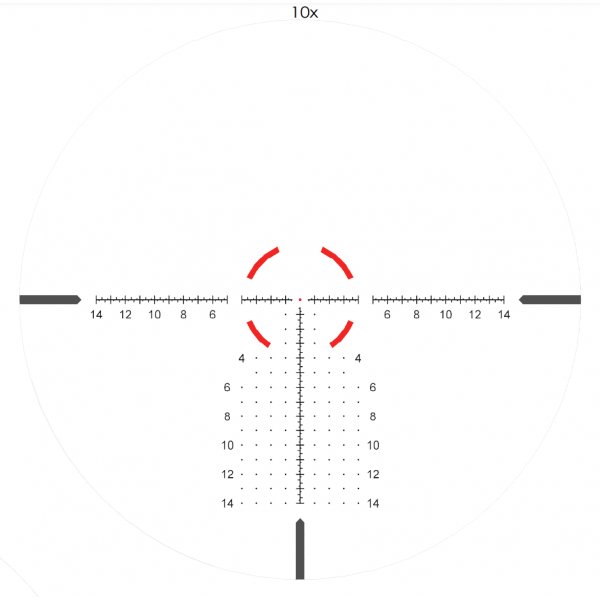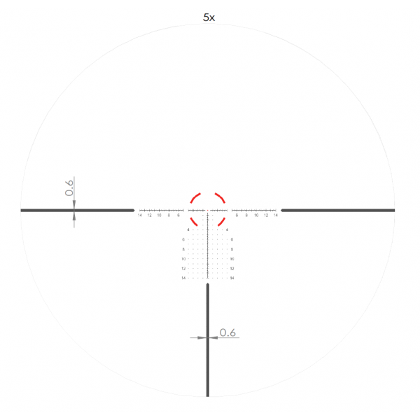 - Для высокоточной стрельбы на дальние дистанции сетка имеет информативную разметку по вертикали и горизонтали, которая хорошо различима на максимальной кратности и позволяет с высокой точностью быстро взять поправки непосредственно перед выстрелом.