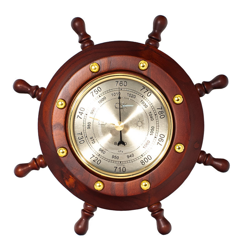Компактный бытовой барометр-штурвал С5 (с закрытой шкалой) после соответствующей настройки показывает текущее давление, характерное для вашей местности. Поможет выбрать день, наиболее подходящий для рыбалки или похода, а метеозависимые люди, чувствительные к резким перепадам давления, смогут вовремя позаботится о собственном самочувствии.