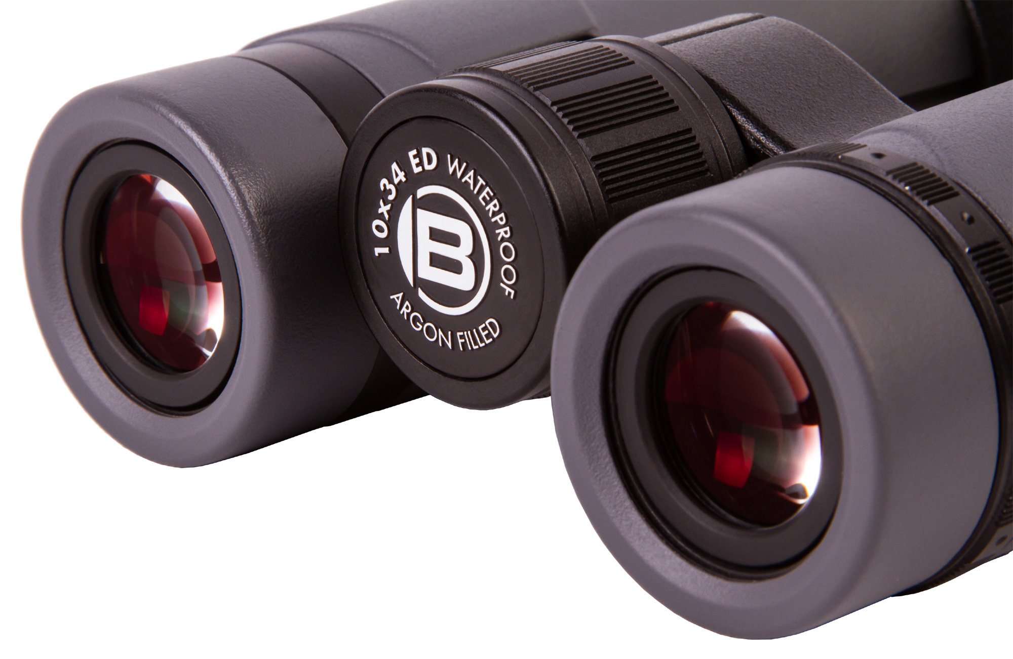 Bresser Pirsch ED 10x34 собран по roof-схеме, а оптические элементы сделаны из низкодисперсионного ED-стекла. Этот материал оптики делает передаваемое изображение более четким и ясно читаемым по всему полю зрения. Фазовая коррекция улучшает контраст и цветопередачу, а многослойное просветление и диэлектрическое покрытие увеличивают эффективность оптики при наблюдениях при слабой освещенности.