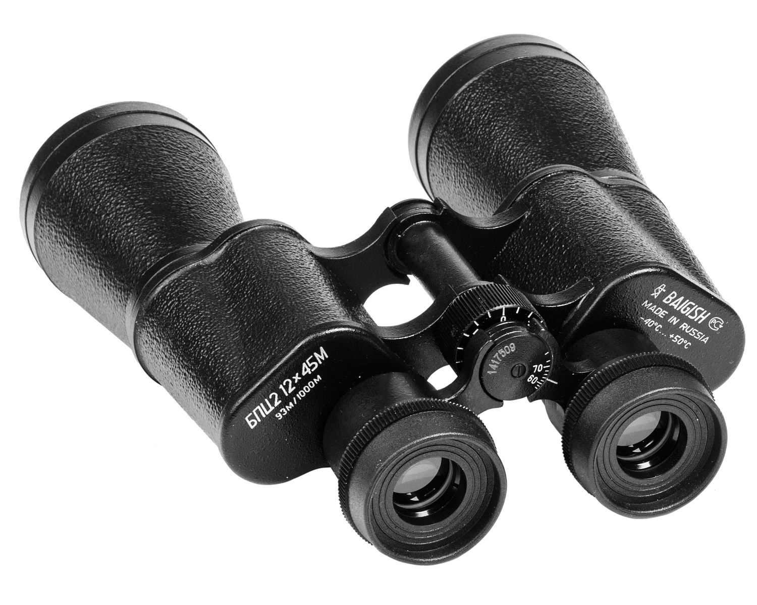 Бинокль БПЦ2 12х45М "Байгыш" выполнен по классической схеме Порро с центральной фокусировкой. Колесико центральной фокусировки удобно располагается под средним пальцем и позволяет быстро и легко настраивать резкость обоих окуляров. Для людей с разной остротой зрения правого и левого глаза предусмотрена дополнительная настройка правого окуляра. Предел изменения центральной диоптрийной наводки от -5 до +10 диоптрий. Предел изменения дополнительной диоптрийной наводки от -3 до +3 диоптрий Бинокли с большой кратностью БПЦ2 12х45М "Байгыш" незаменимы при наблюдениях на больших расстояниях - на море, на реке, в степи или тундре.
