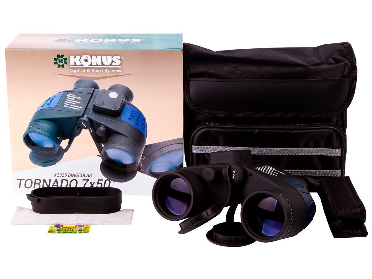 Бинокль Konus TORNADO 7x50, плавающий, Porro, Bak-4, с компасом и дальномерной сеткой