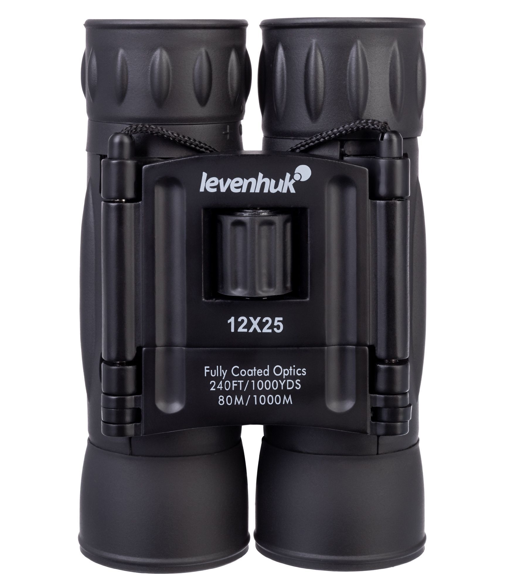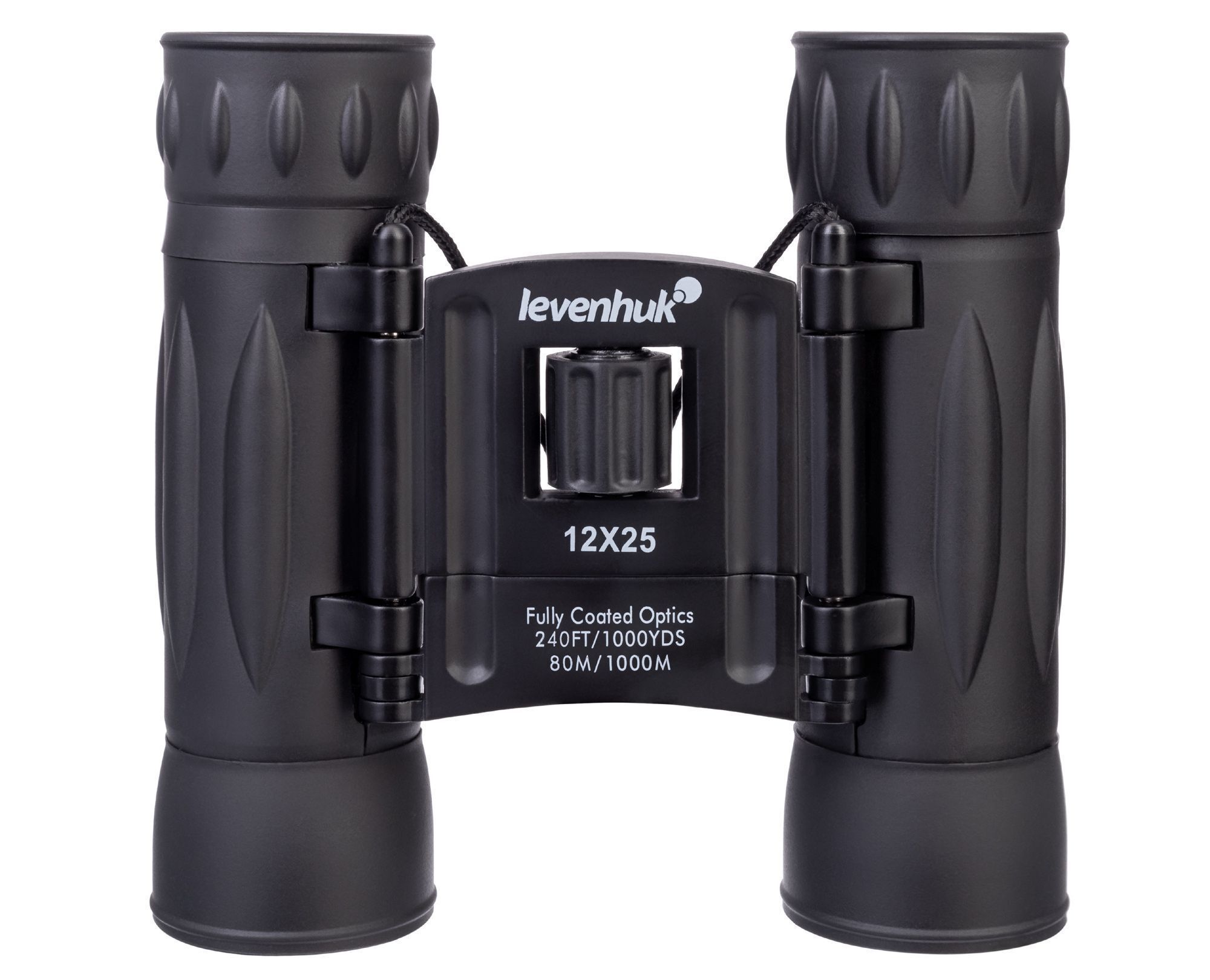 Удобная конструкция позволяет легко сложить бинокль – в таком виде он занимает еще меньше места. Levenhuk Atom 12x25 не требует сложной настройки: чтобы начать наблюдения, достаточно отрегулировать межзрачковое расстояние и, если нужно, откорректировать диоптрии. С мягкими резиновыми наглазниками вести наблюдения очень комфортно. Корпус покрыт резиновой оболочкой, поэтому грязь, пыль и влага не попадают внутрь прибора. Бинокль удобно ложится в руки и не скользит.