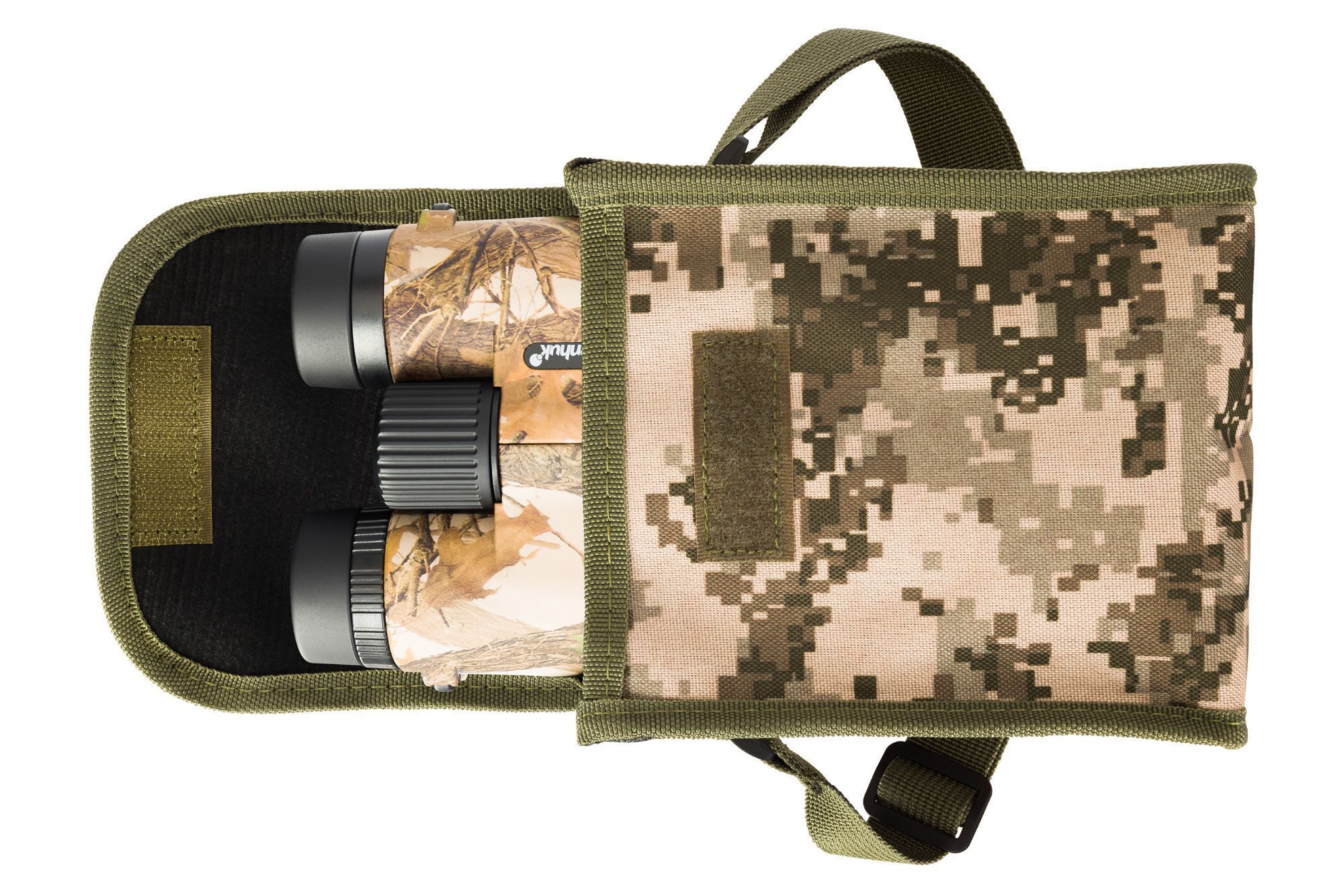 В основе оптики бинокля Levenhuk Camo Pine 10x42 лежат roof-призмы, которые выгодно отличаются небольшими габаритами. Стекло BK-7 дополнено полным многослойным просветлением – картинка получается яркой, контрастной и информативной. Любой пользователь может подстроить бинокль под свое зрение благодаря кольцу диоптрийной коррекции на окуляре, а резкость регулируется с помощью барабана по центру. Сфокусироваться можно не только на отдаленных целях, но и на объектах, находящихся всего в 3 метрах от вас.