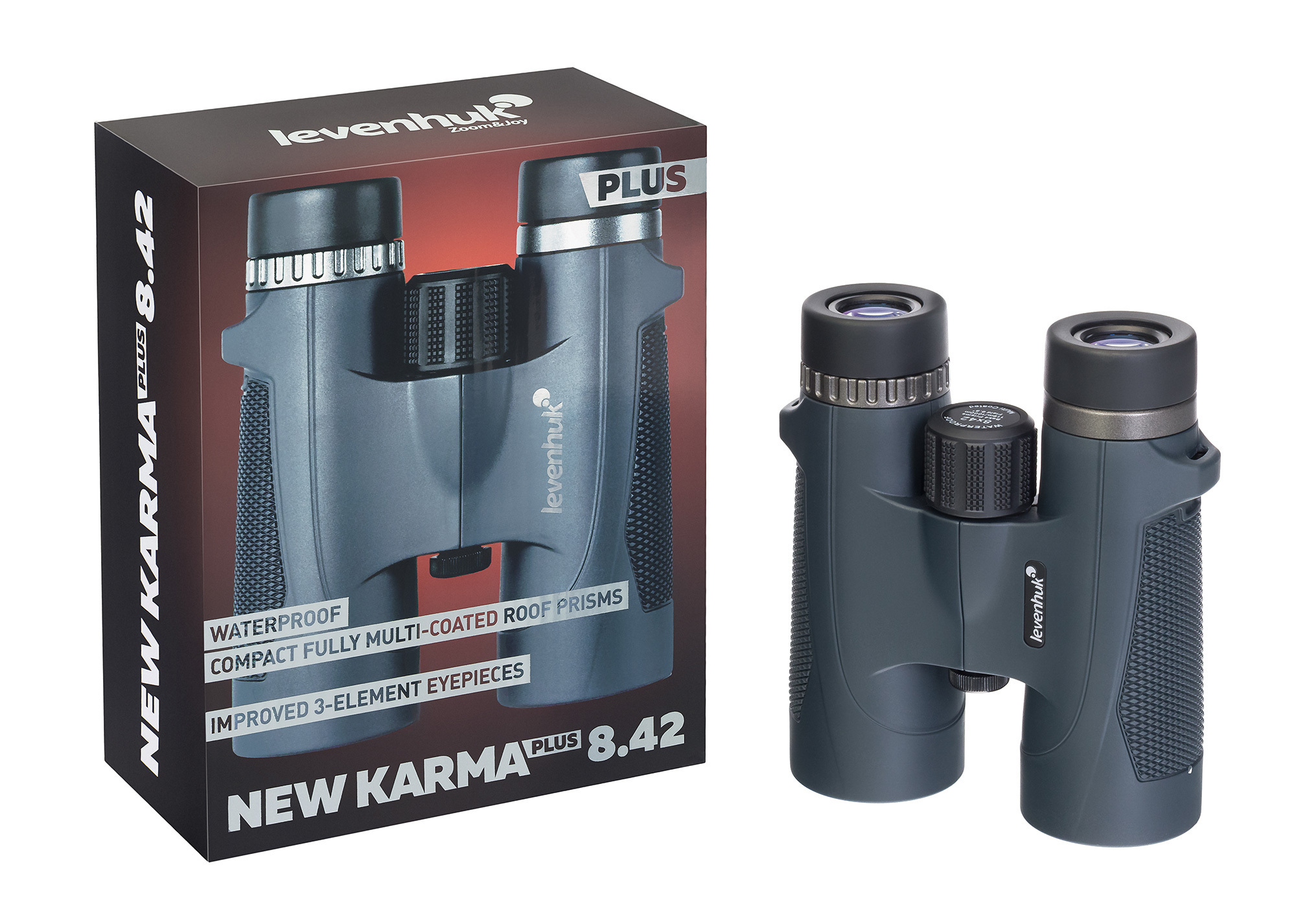 Бинокль Levenhuk New Karma PLUS 8x42 – отличный выбор для охоты, рыбалки, активного отдыха, походов и туризма. 8-кратное увеличение и поле зрения 6,8° позволяют с комфортом следить за удаленными статичными и подвижными объектами (включая дикую природу – животных, птиц), проводить обзорные исследования местности, невзирая на условия освещения. Благодаря многослойному просветляющему покрытию на оптических элементах, изображение, видимое наблюдателем, остается одинаково ярким, четким и светлым как при полноценном солнечном свете, так и в сумерках.