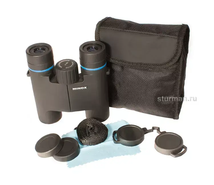 MINOX BLU 8x25 - суперлёгкий компактный бинокль для сафари, кемпинга, пешего туризма и путешествий. Прочный обрезиненный корпус не выскользнет из рук, защищён от воды и пыли, выдерживает перепады температур от -10 до +40 градусов Цельсия. А поскольку минимальная дистанция фокусировки составляет 6 м, можно наблюдать за дикими животными на безопасном расстоянии.