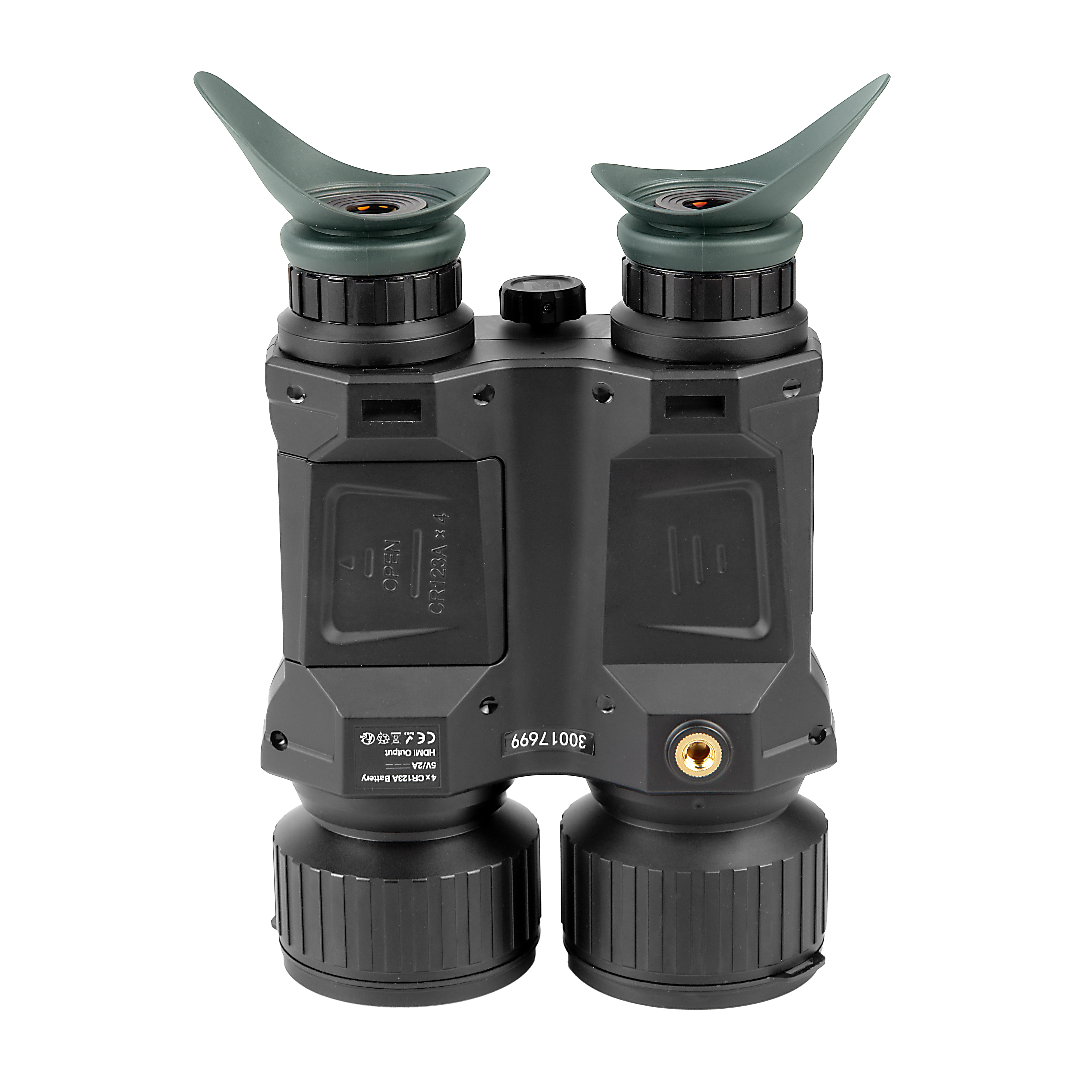Конструкция корпуса и расположение кнопок позволяет управлять прибором, не меняя положения рук и не прерывая наблюдения. На верхней панели расположены кнопки включения, управления ночным режимом, запуска и остановки съемки. Одна поворотно-нажимная кнопка между окулярами служит для входа в меню, просмотра записей и управления параметрами.