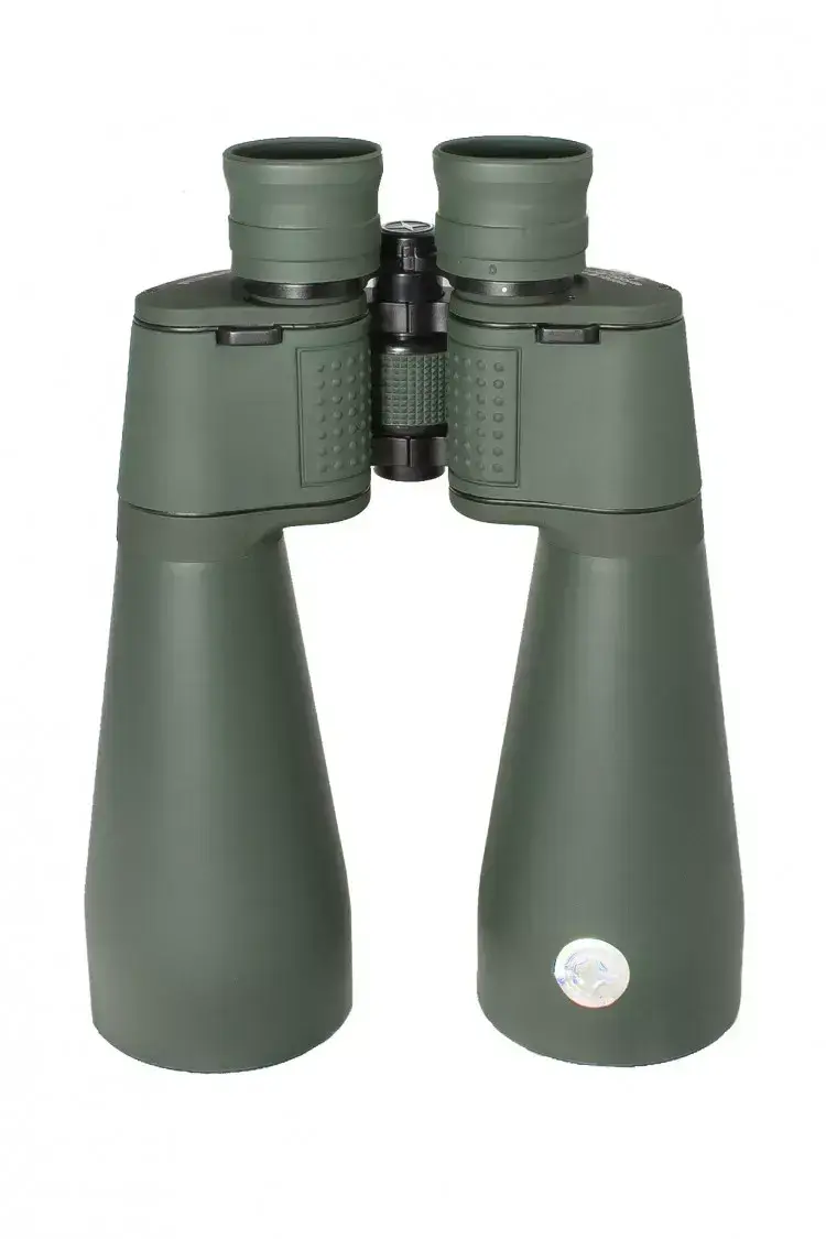 Конструкция. Корпус изготовлен из алюминиевого сплава, тубусы объективов — из конструкционного пластика. Места крепления тубусов к корпусу усилены алюминиевыми вставками. Мягкое полимерное покрытие (обрезинка) защищает от царапин, приятно на ощупь и не скользит в руках. Крышки объективов и окуляров защищают оптику от пыли и капель дождя при транспортировке.