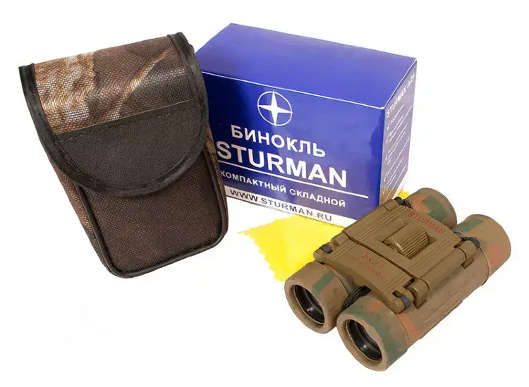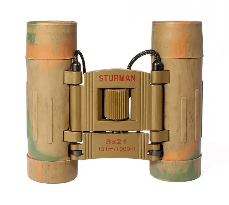 Бинокль Sturman 8x21 – это малый вес (менее 200 г) и компактность, эргономичный современный дизайн и хорошее качество картинки. Корпус спроектирован по типу «Open Hinge» или иначе «открытый шарнирный мост». Это позволяет в нерабочем состоянии удобно поместить бинокль в чехол или сумку, сложив (повернув на шарнирах) зрительные трубы к центральной оси, и минимизировать пространство для хранения.
