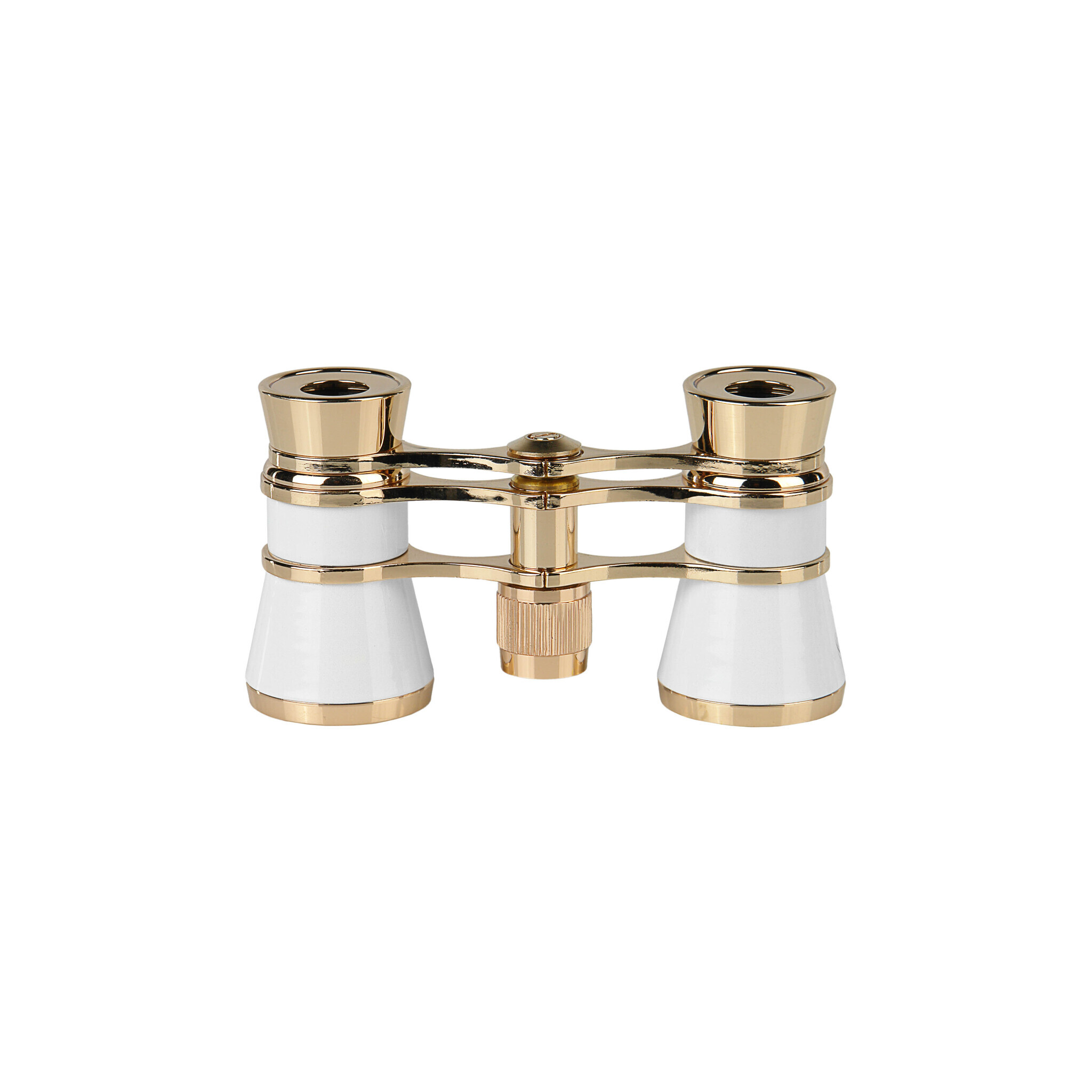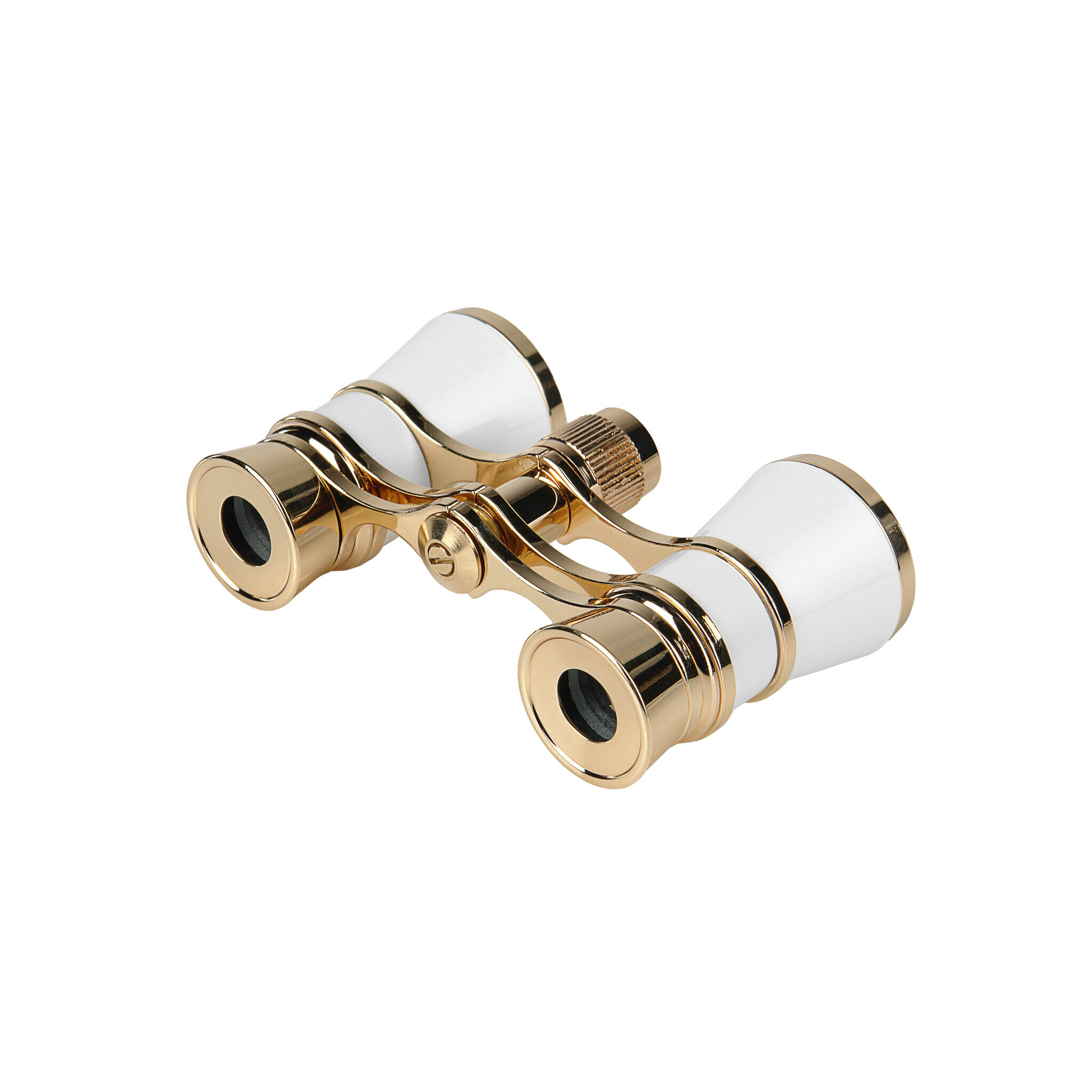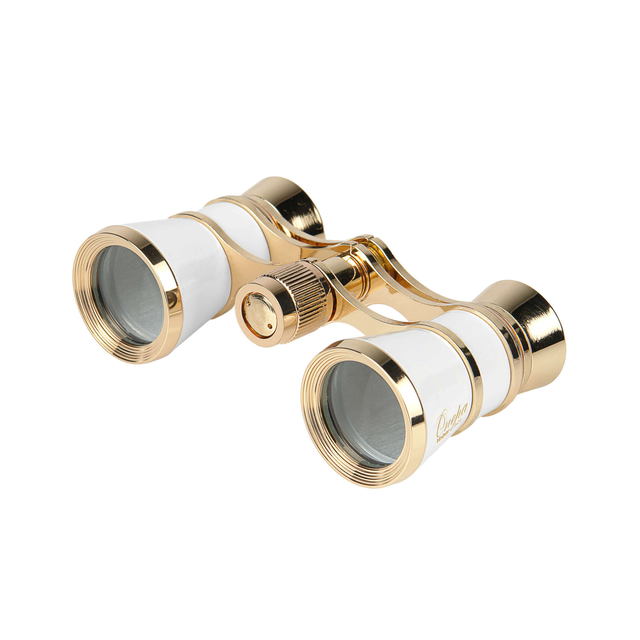 Классическая галилеевская оптическая схема с центральной внутренней фокусировкой, заключенная в белый лакированный корпус с напылением «золото». Трехкратное увеличение и широкое поле зрения позволят вам насладиться представлением даже с галерки.