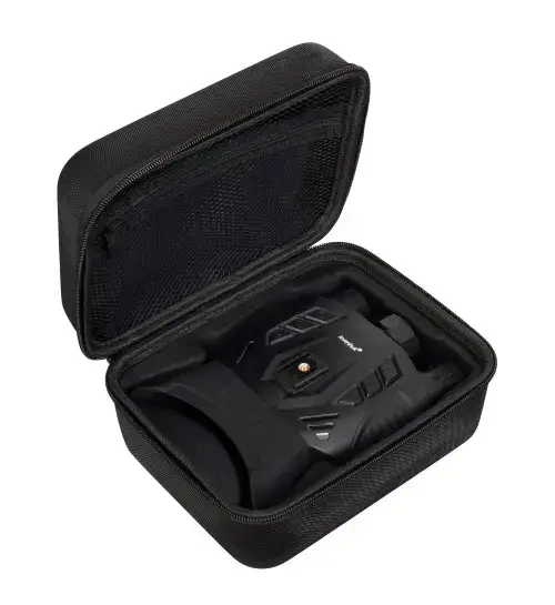 Для формирования изображения окружающего мира прибор использует современный CMOS-сенсор. Далее картинка выводится на жидкокристаллический IPS-экран с разрешением 640х360 пикс, где дополнительно увеличивается при помощи выпуклой линзы – это позволяет визуально воспринимать изображение как на 5-дюймовом дисплее, хотя реальная диагональ равна 2,4 дюймам, а также улучшает качество и детализацию картинки. Работа с биноклем в ночное время осуществляется за счет встроенной ИК-подсветки с длиной волны 850 нм и мощностью 3 Вт – этого достаточно для обнаружения объектов в полной темноте на расстоянии 250–300 метров. Точку, создаваемую осветителем с длиной волны 850 нм могут заметить дикие животные или сторонние ПНВ, – учитывайте это, если вам важно сохранить свое положение на местности в тайне. Пользователю доступна настройка яркости ИК-подсветки – можно выбрать один из 7 уровней. Также можно настроить яркость самого экрана – для него предусмотрено 8 уровней интенсивности.