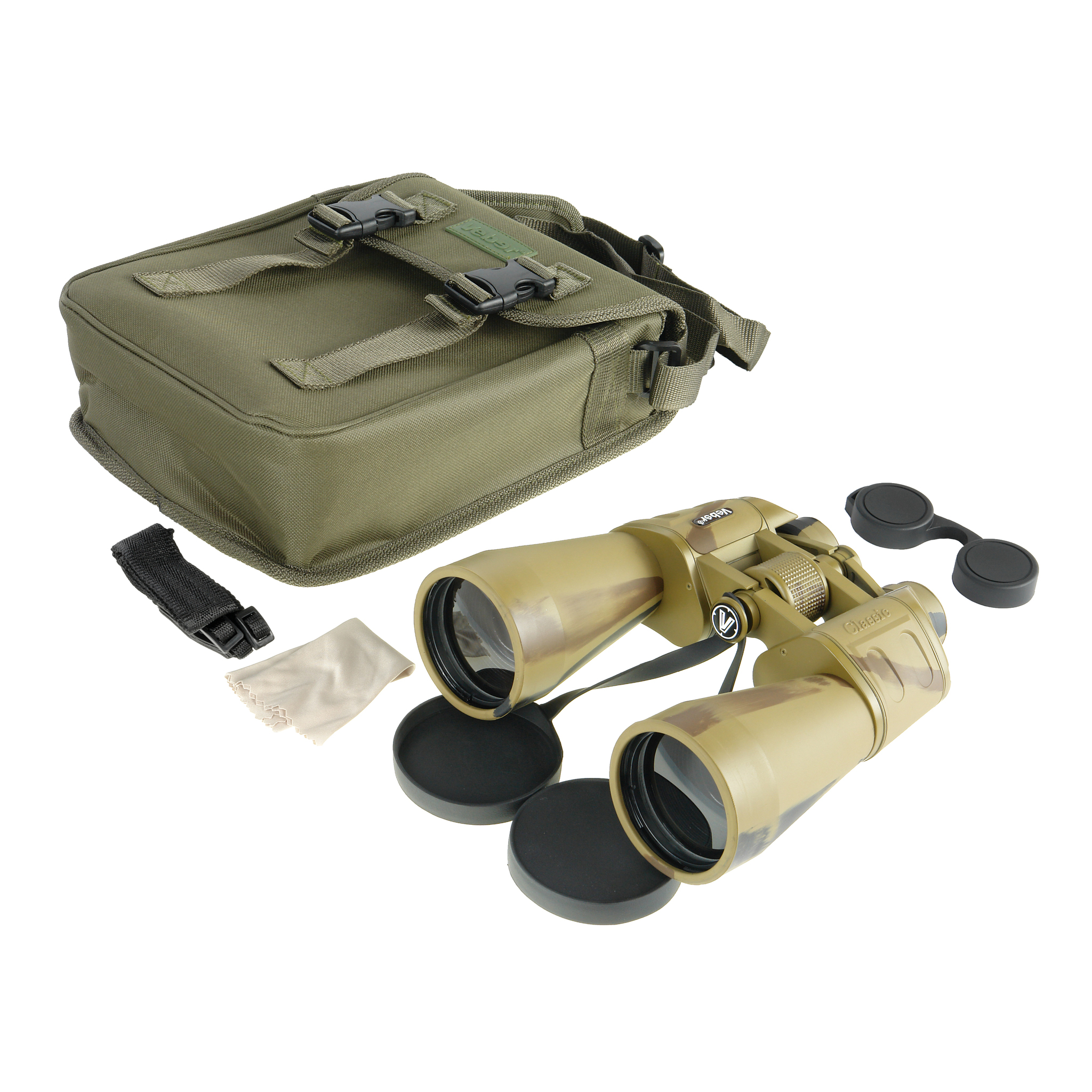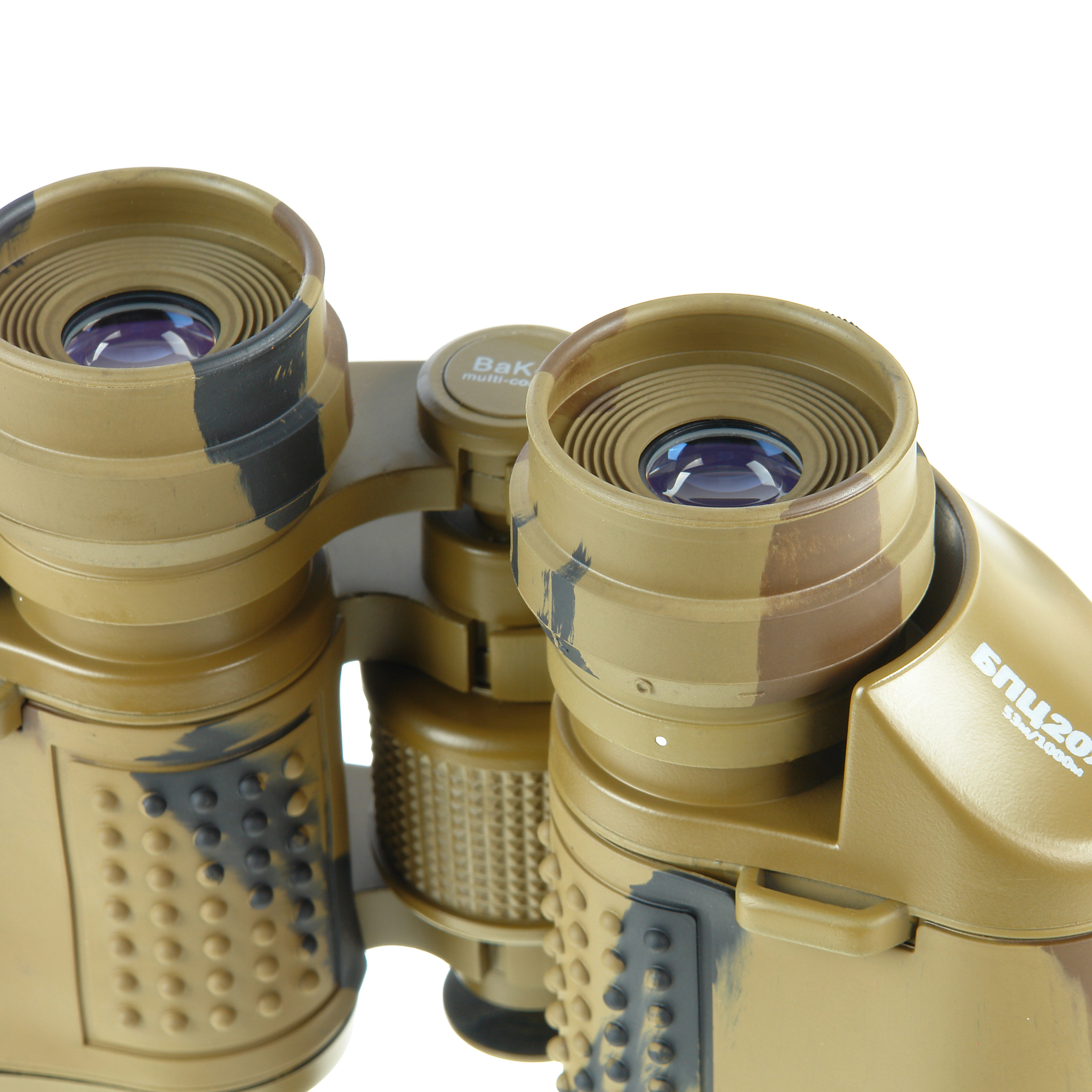 Бинокль Veber Classic БПЦ 20x60 камуфлированный имеет металлический корпус и многослойное, трудностираемое просветляющее покрытие объективов и окуляров.