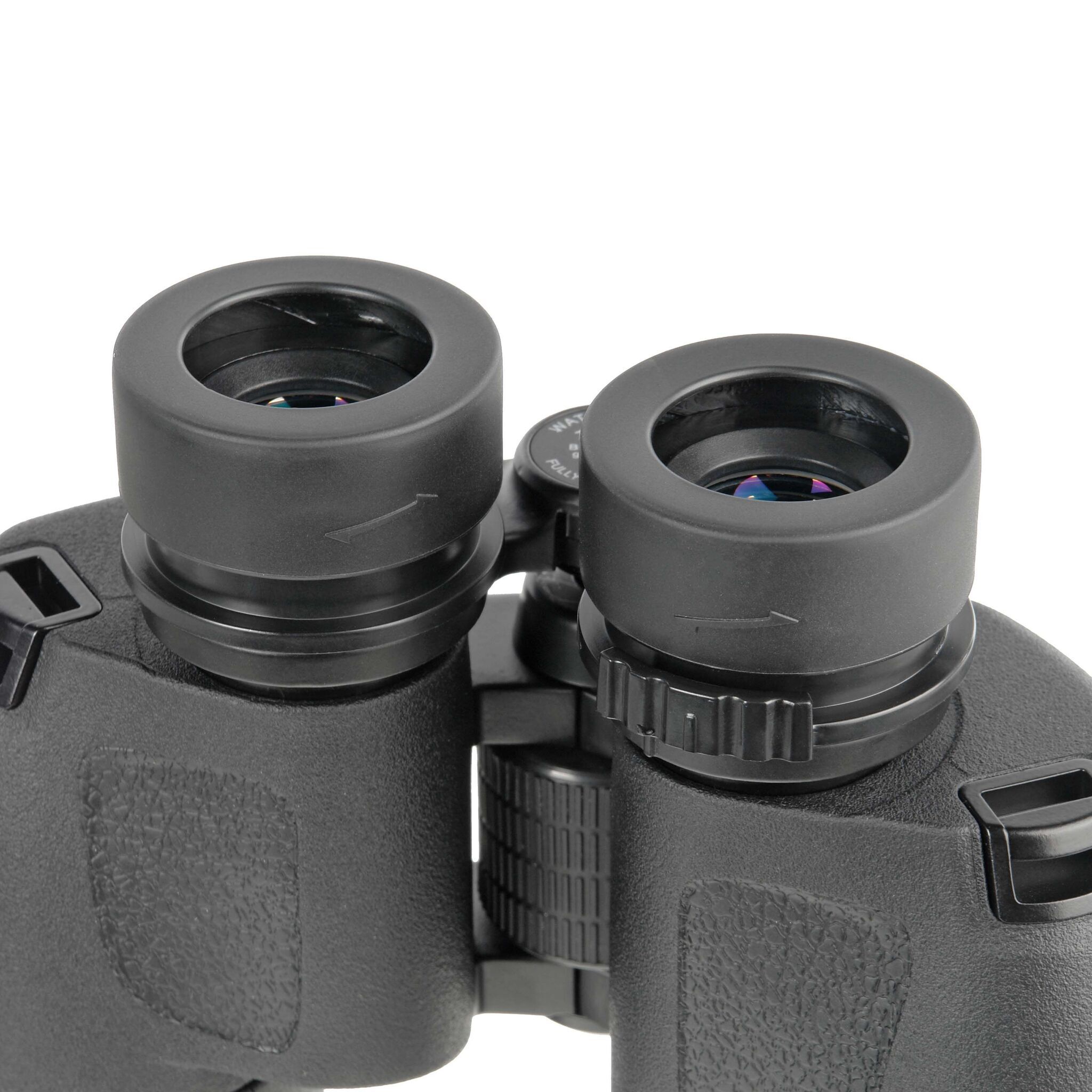 Бинокль имеет заполненный осушенным газом алюминиевый обрезиненный корпус и степень влагозащиты IP67, что означает полную защиту от пыли, а также от погружения в воду на глубину не более чем 1 м. Благодаря осушенному газу линзы бинокля защищены от запотевания при перепаде температур.