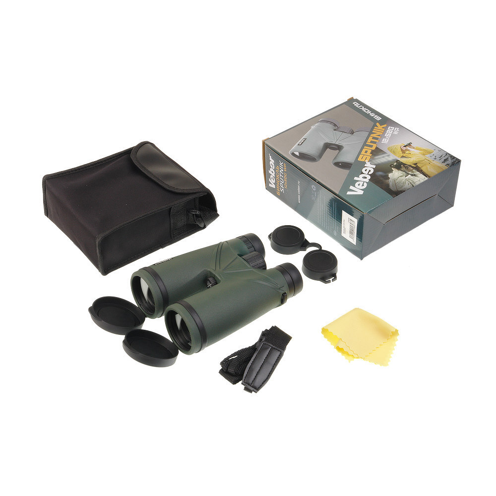 Veber SPUTNIK 10х42G – бинокль с большими объективами – 42 мм и при этом достаточно легкий (509 г), прочный и эргономичный, с которым владелец может не расставаться целый день.