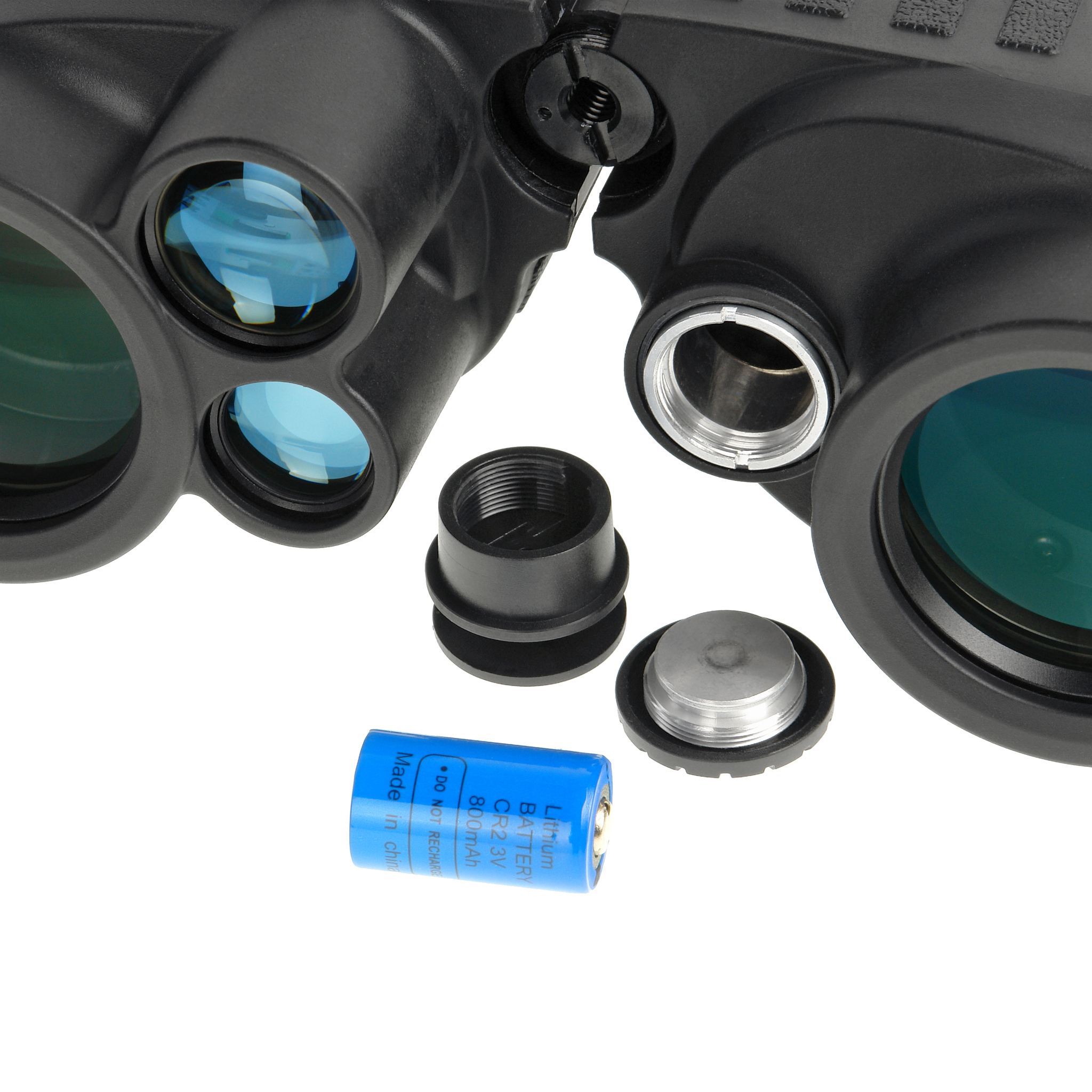 Для питания дисплея в комплектацию бинокля входит батарейка CR2 (3.0В). Также с прибором совместимы Li-ion аккумуляторные батарейки CR2 (3.0В) / RCR2 (3.7В), которые приобретаются отдельно.