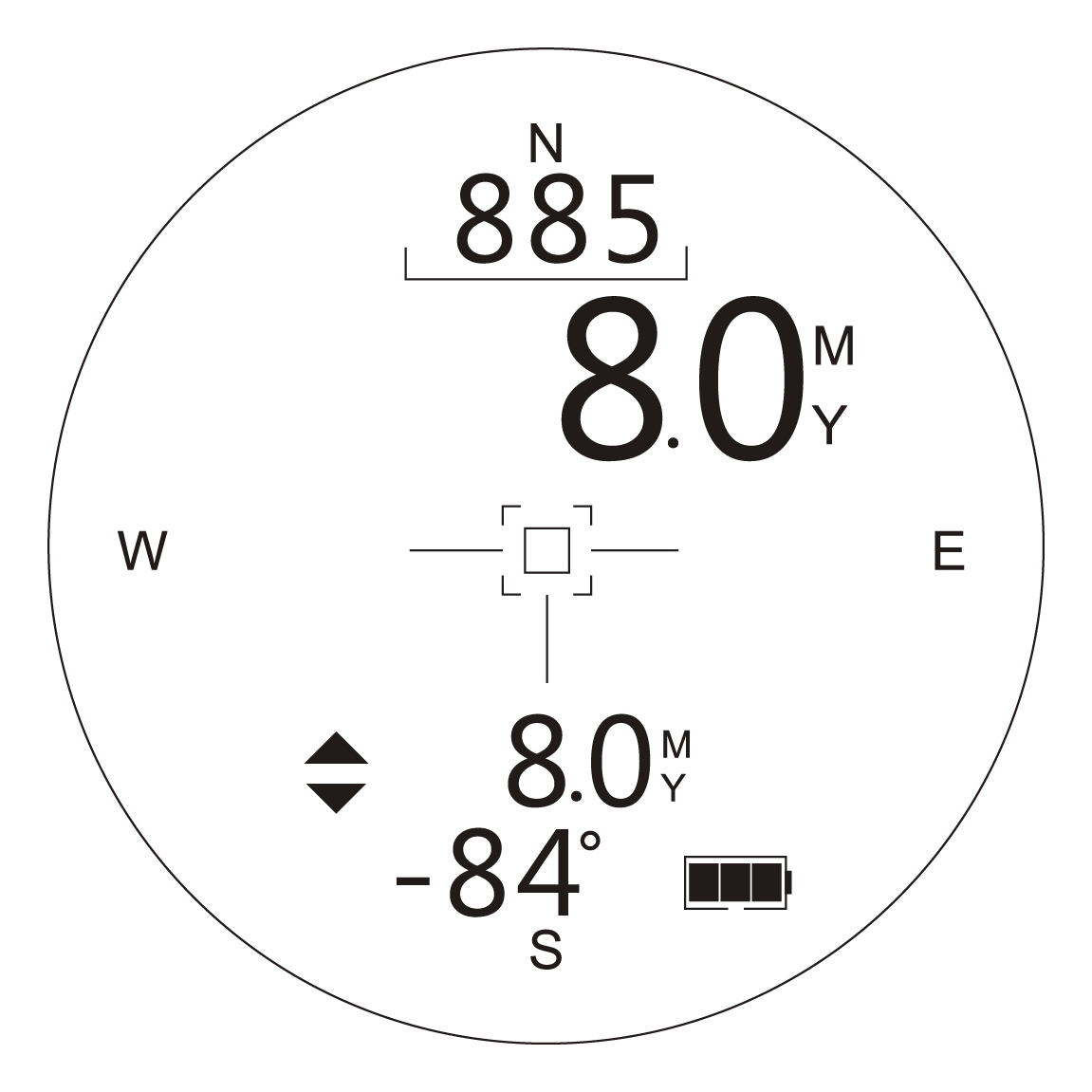 При нажатии на другую кнопку меняются единицы измерения (метры/ярды) и включается режим компаса: на экране дисплея отображается азимут, помогающий сориентироваться на местности.