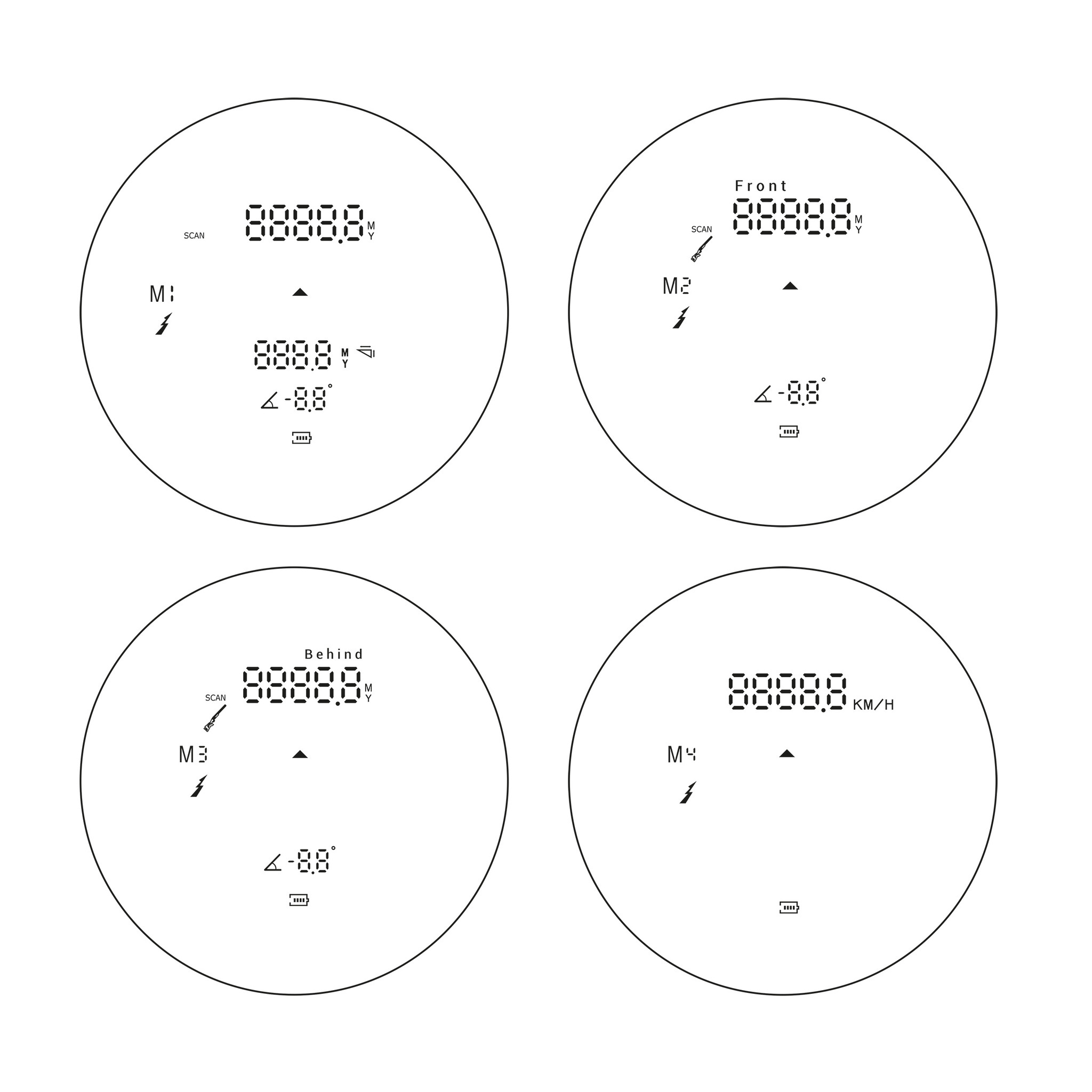 - Различные режимы работы: измерение расстояния до цели по прямой, угла цели, высоты и горизонтального расстояния, измерение расстояния до объекта на переднем плане и дальнем плане, режим измерения скорости (до 300 км/ч)