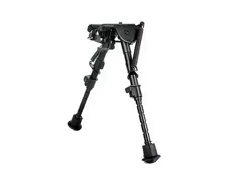 База сошек – цельная, прочная. Крепятся сошки под цевьё за антабочный винт или за ствол оружия (специальный адаптор в комплект не входит, а приобретается отдельно). Идеально подходят для стрельбы сидя или лёжа. Длина ножек регулируется ступенчато от 150мм. до 230мм. Каждая ножка состоит из 2-х секций. Длину можно регулировать на любую высоту, с высокой точностью, несмотря на ступенчатую регулировку. Нажатием на кнопку стопорного кольца сошки раскладываются и складываются в ручную (НЕ АВТОМАТИЧЕСКИ). Ножки сошек складываются вдоль цевья или ствола в одном направлении.