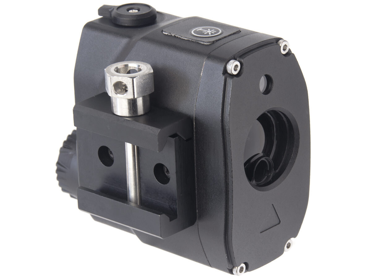 Дальномер крепится к прицелу с помощью стандартной планки Picatinny. Обеспечивает точное определение дистанции до наблюдаемого объекта в диапазоне от 5 до 600 метров.