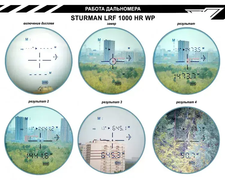 STURMAN LRF 1000 HR WP — это одновременно оптический монокуляр 6x24 для наблюдений, спидометр для замера скорости до 300 км/ч, угломер и лазерный дальномер с дальностью измерений до 1000 м (до 1500м до стены в пасмурную погоду). Среди бюджетных моделей выделяется и самой большой дальностью действия, и качеством работы.