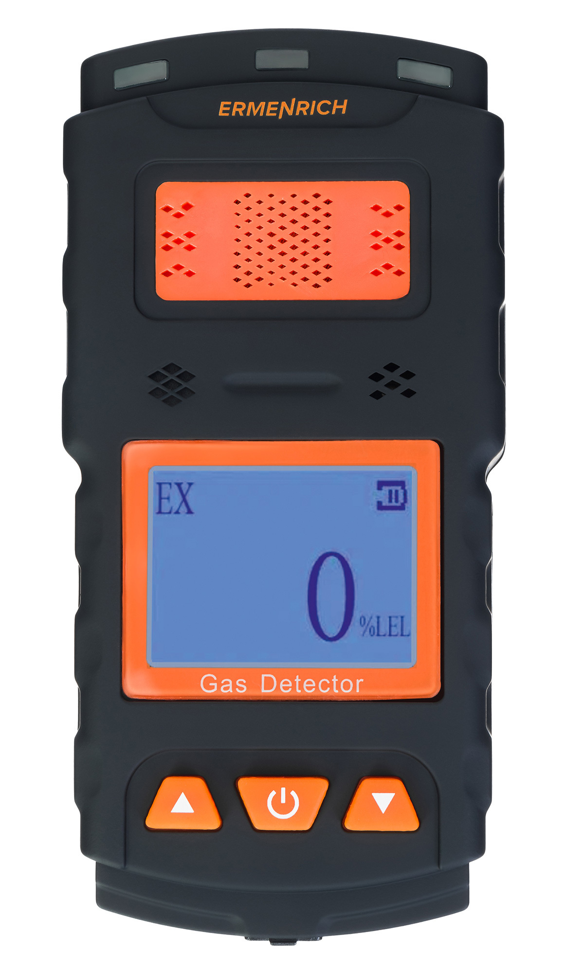 Детектор газа Ermenrich NG35 предназначен для определения концентрации горючих и взрывоопасных газов в воздухе, обеспечивая безопасность в промышленных и бытовых помещениях. Чувствительный сенсор определяет концентрацию водорода, окиси углерода, метана, бутана, пропана, этилена, ацетилена и многих других горючих газов. Работает прибор в диапазоне 0–100% LEL. Настраивать порог срабатывания тревоги можно самостоятельно.