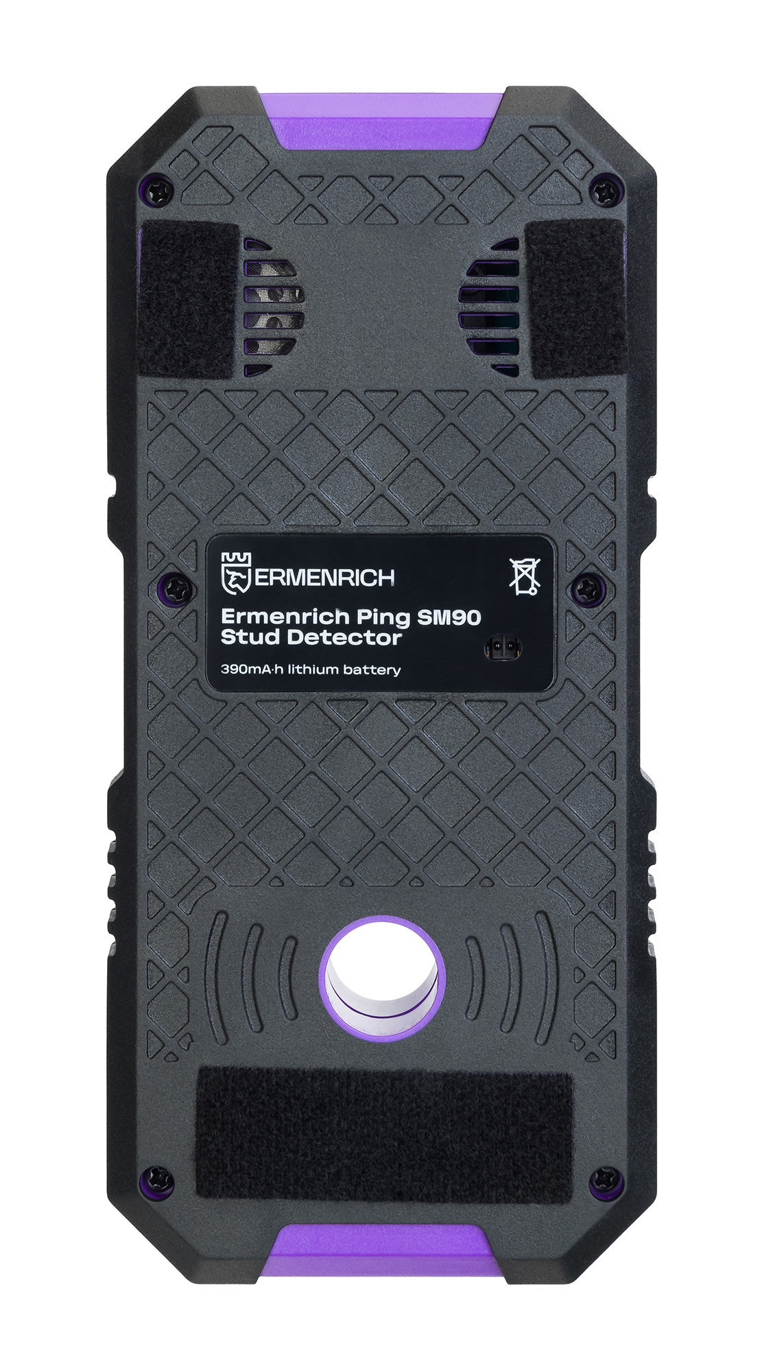 Ermenrich Ping SM90 – многофункциональное устройство для обнаружения скрытых проводов под напряжением, труб, деревянных и металлических конструкций, а также для измерения длины и уровня. Детектор показывает наличие проводов на глубине до 55 мм, конструкций на глубине до 38 мм. Черные металлы обнаруживаются не глубже 100 мм, цветные – 120 мм. Тестер можно использовать как для домашнего ремонта, так и для профессиональных строительно-монтажных работ.