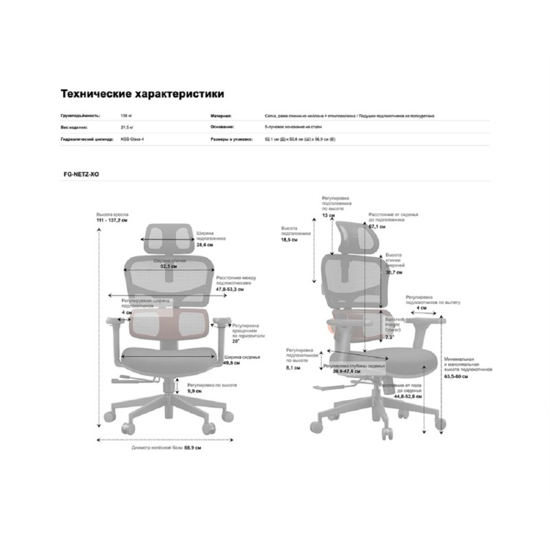 Эргономичное компьютерное кресло FoxGear NETZ модель XO - office edition, серый (FG-NETZ-XO-GY)