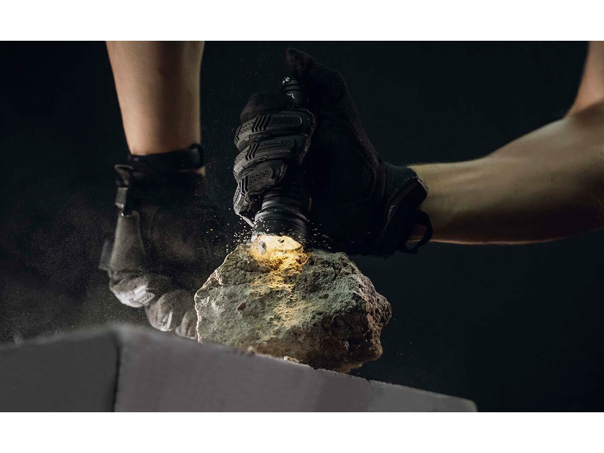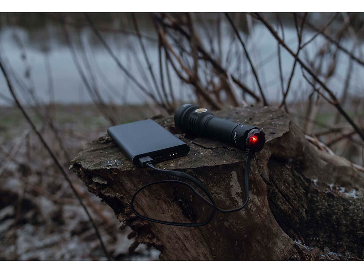 - Полная защита от проникновения воды, грязи и пыли – фонарь продолжает работать даже на глубине до 10 метров, выдерживает падение с высоты до 10 метров, порт для зарядки также водонепроницаемый