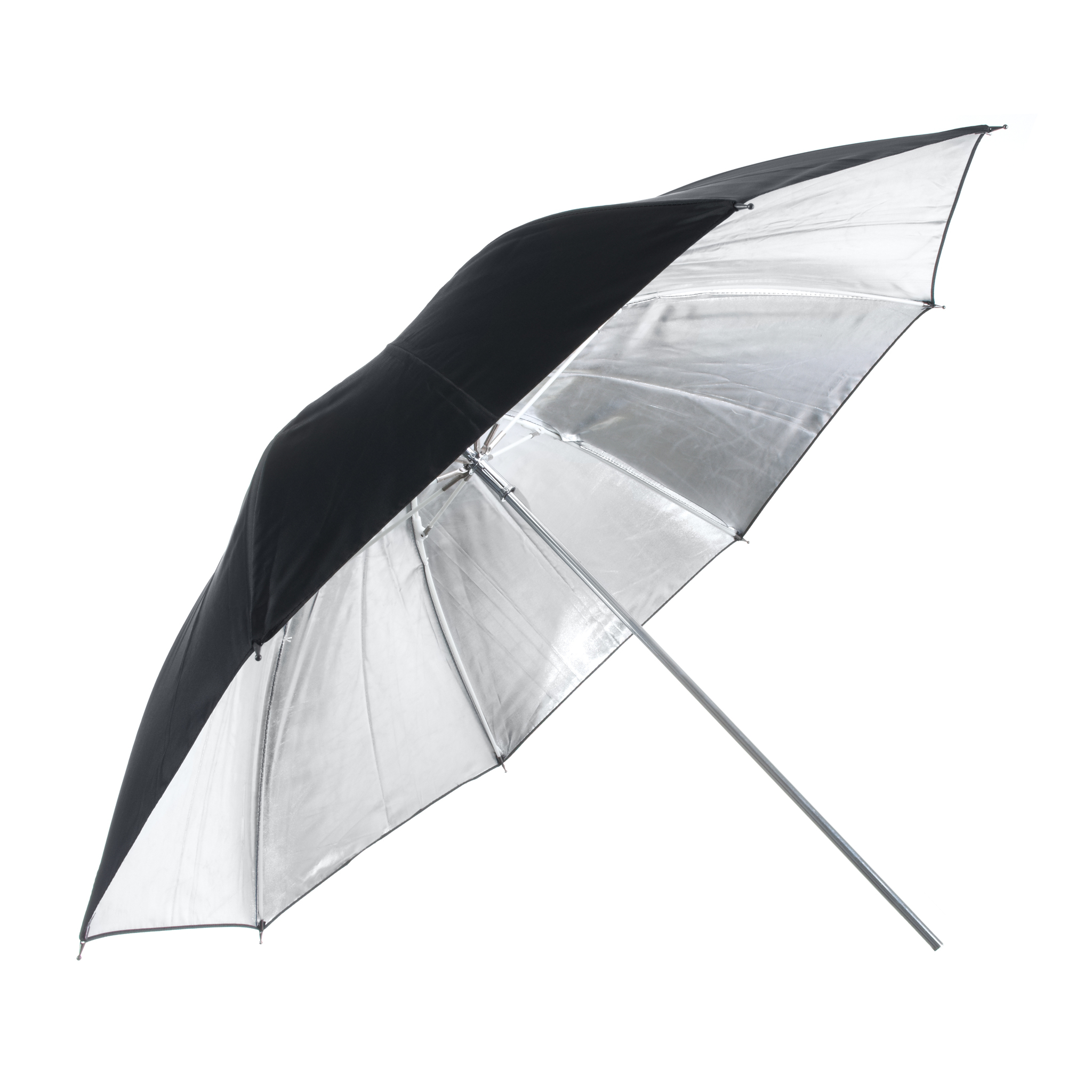Серебристая поверхность зонта формирует более жесткий, по сравнению с белыми зонтами, свет, что позволяет получать контрастное изображение с четкими тенями.