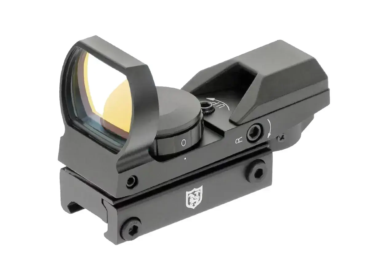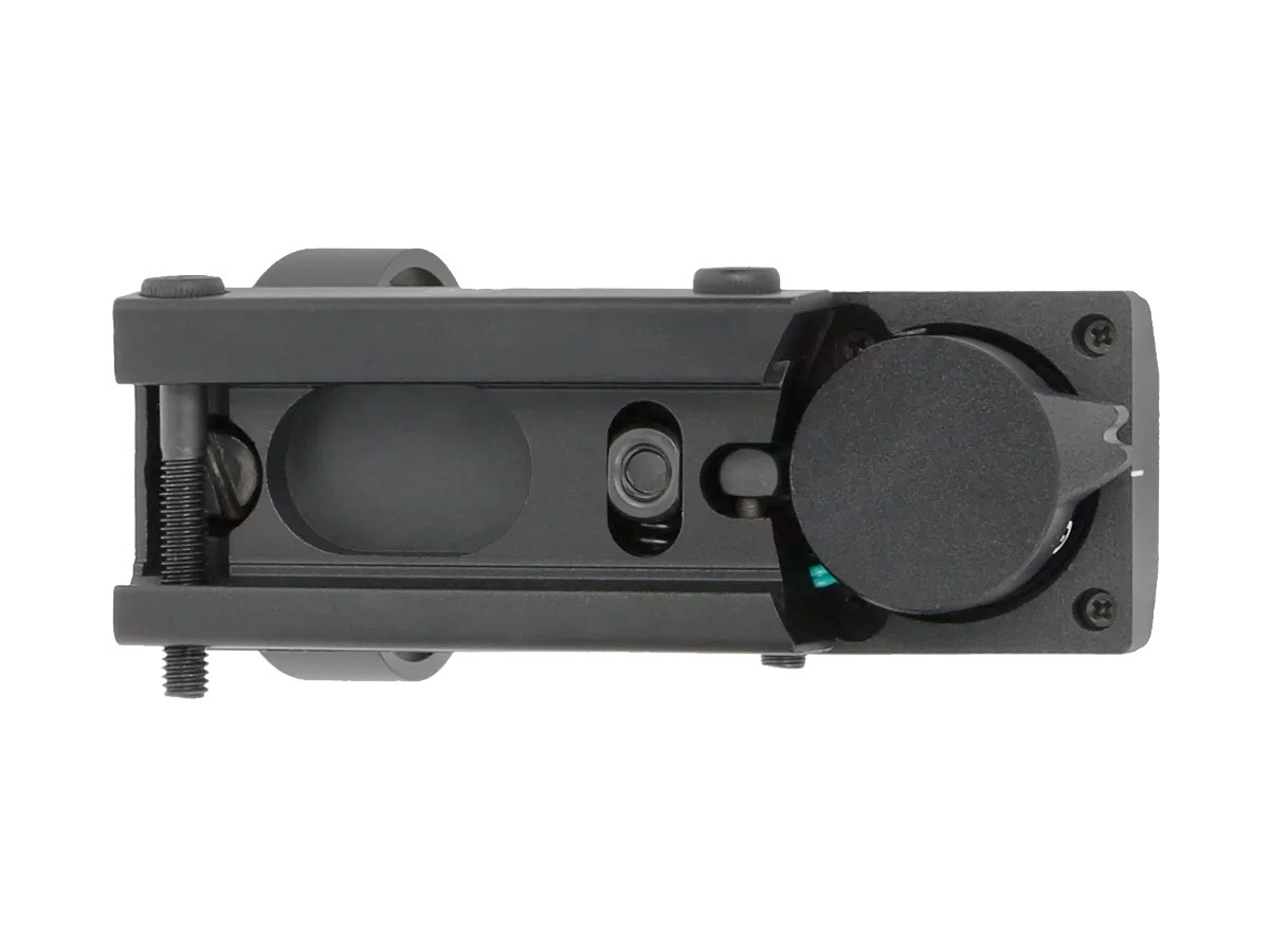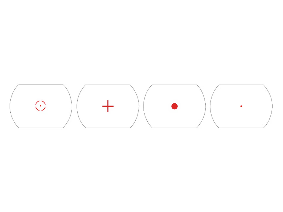 Регулировка по вертикали и горизонтали осуществляется с помощью шестигранного ключа, входящего в комплект. Цена клика составляет 1MOA. Регулятор яркости прицельной марки, совмещённый с батарейным отсеком, позволяет изменять интенсивность подсветки. Сама прицельная марка имеет четыре разновидности. Многослойное покрытие защищает линзу от запотевания и мелких повреждений.