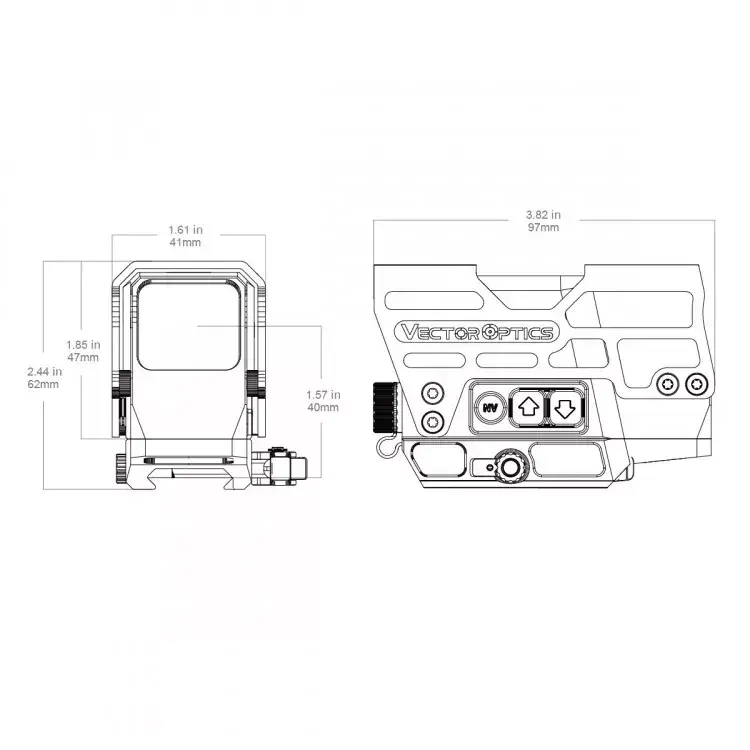 | Габариты | высота с креплением и кожухом 62 мм, высота корпуса 47 мм, расстояние от верха планки до центральной оси прицела 40 мм, длина с кожухом - 97 мм, ширина с кожухом - 41 мм |