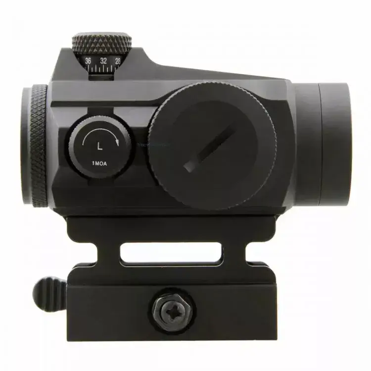 Прицельная метка — красная «точка» диаметром 3 MOA (примерно 8,7 см/100 м). Интенсивность свечения можно отрегулировать вручную. Доступно 11 уровней: 10 уровней для стрельбы на ярком солнце и хорошей видимости на светлом фоне, плюс ещё 1 уровень с минимальной яркостью для сумерек или совместной работы с очками ночного видения. Подсветка цикличная, с полным выключением в положении «0». Барабан удобно вращать как в перчатке, так и без неё.