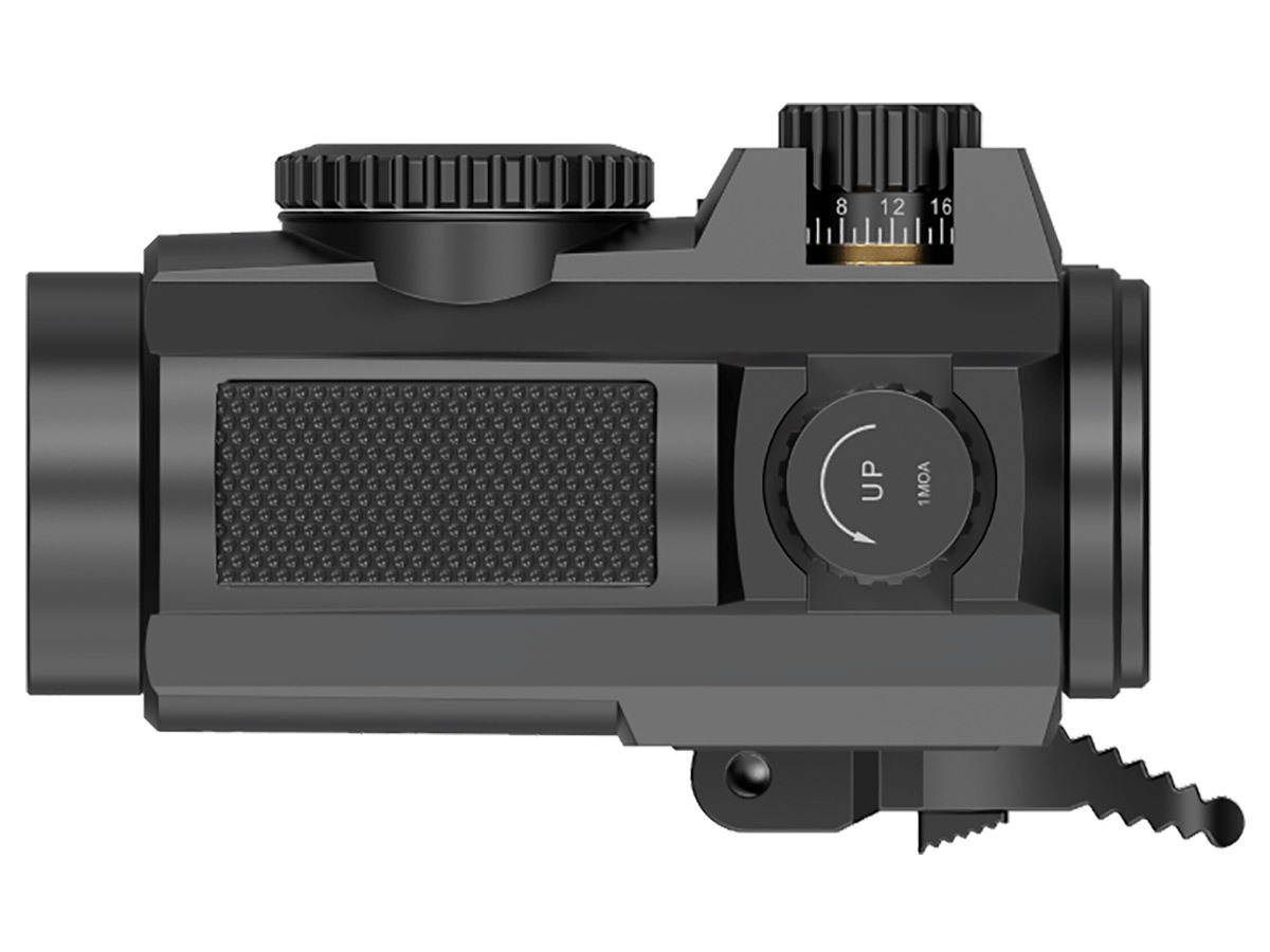 Ещё одна «фишка» прицелов MAVERICK поколения II / II PLUS — тактическая версия пристрелочных барабанчиков: без защитных колпачков, как у большинства коллиматоров, и в то же время не винты, требующие отвёртки / монеты, при этом достаточно высокие, чтобы работать с ними в перчатках, с чёткой разметкой и хорошо различимыми на слух кликами, чтобы вносить поправки на слух.. Для защиты от ударов и случайного сбоя настроек барабаны «скрыты» в U-образных углублениях. Шаг выверки 1 MOA, диапазон выверок +/-60 MOA.