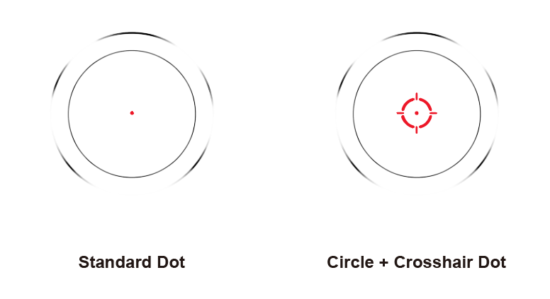 2 прицельных сетки. Первая — «точка» 3 MOA, оптимальный вариант для быстрой стрельбы навскидку, в том числе по движущимся целям. Вторая — точка в круге с двумя вертикальными и двумя горизонтальными насечками; рассчитана на больший запас времени при прицеливании, кроме того, по насечкам можно визуально отслеживать, есть ли наклон или завал ружья с прицелом.