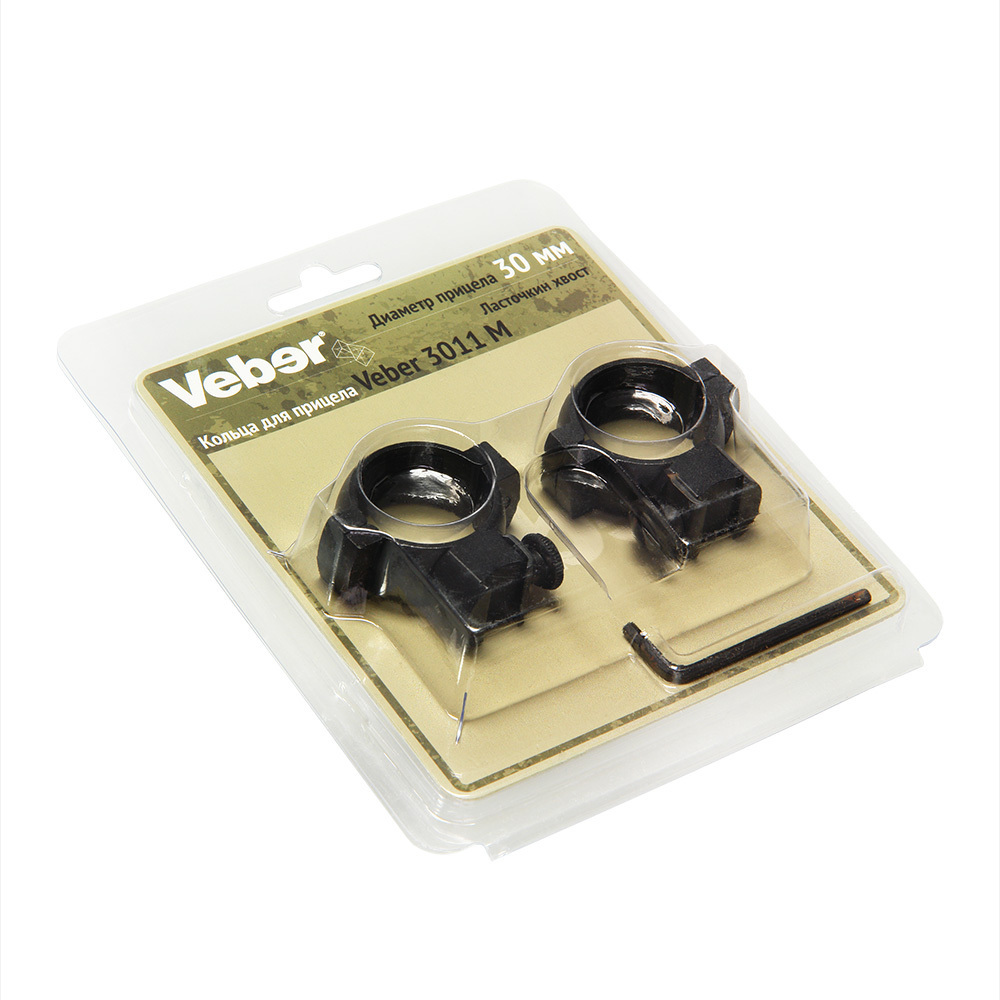 Кольца для прицела Veber 3011 M предназначены для установки оптических прицелов с посадочным диаметром 30 мм на оружие с верхней планкой «ласточкин хвост» 11 мм.Винты с насечкой, на головке винта прямой шлиц. Кольца изнутри проклеены тонким синтетическим материалом. В комплект входит ключ-шестигранник. Материал всех крепежных элементов — сталь. Детали колец изготовлены из высокопрочного алюминиевого сплава марки 6061-Т6.