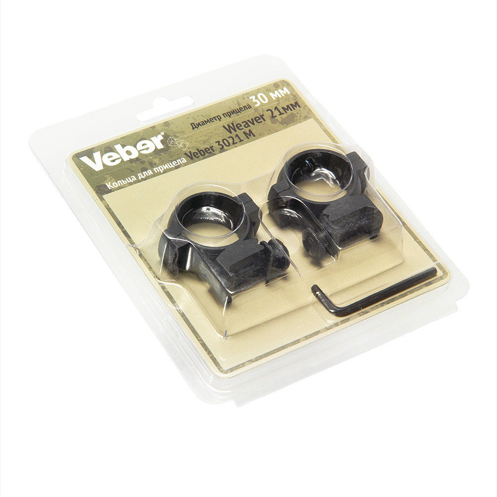Кольца для прицела Veber 3021 M предназначены для установки оптических прицелов с посадочным диаметром 30 мм на оружие с верхней планкой Weaver. Винты с насечкой, на головке винта прямой шлиц. Кольца изнутри проклеены тонким синтетическим материалом. В комплект входит ключ-шестигранник.Материал всех крепежных элементов — сталь. Детали колец изготовлены из высокопрочного алюминиевого сплава марки 6061-Т6.