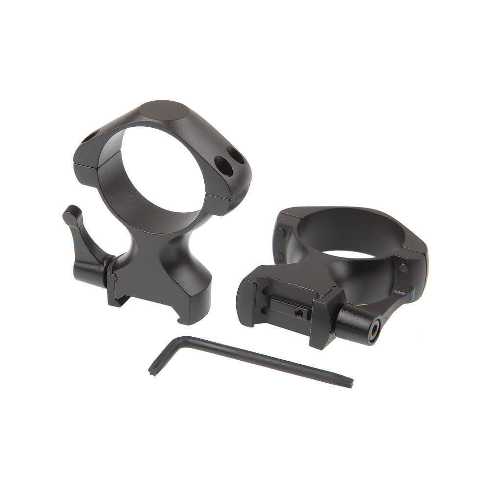 Быстросъемные высокие кольца Veber E 3421 HS предназначены для установки прицела с посадочным диаметром 34 мм на оружие с планкой Weaver. Высота установки прицела 40 мм. Существуют также высокие кольца Veber E 3421 MS с высотой установки прицела 33,5 мм.