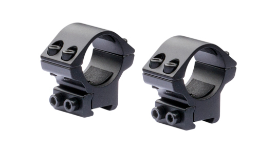 Крепления Nikko Stirling изготовлены из авиационного алюминия высшего качества с матовой черной отделкой и предназначены для винтовок всех категорий. Четыре винта крепят верхнюю часть кольца к основанию, что придает дополнительную прочность и жесткость.