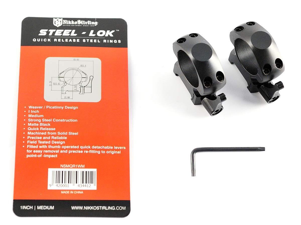 Кольца Nikko Stirling Diamond QR, быстросъемные на Weaver, 25.4мм, средние, 2 винта, материал – сталь.