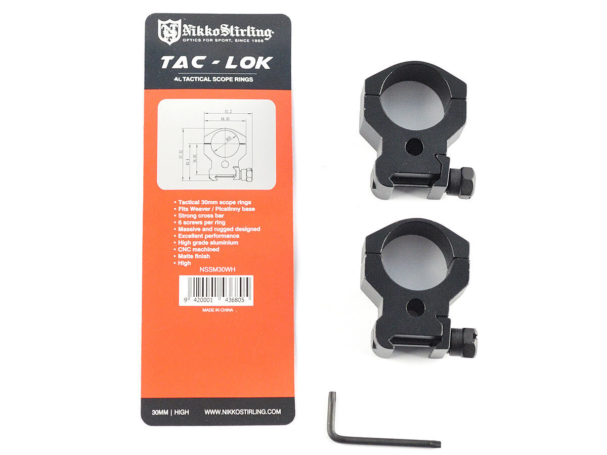 Кольца Nikko Stirling Sport Match, небыстросъемные на Weaver, 30мм, высокие, 6 винтов,