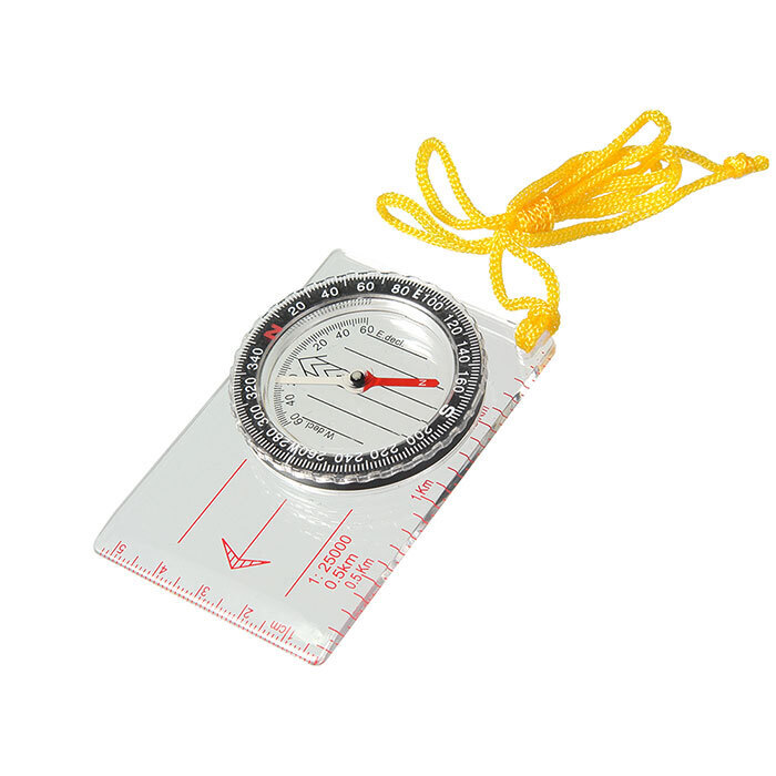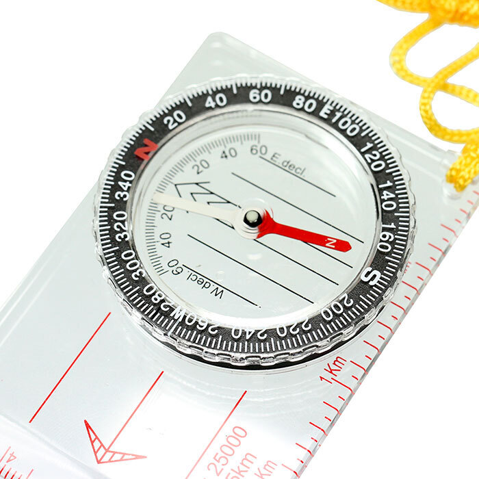 Компас спортивный состоит из основания (планшета) с линейкой для часто используемых масштабов карт 1:25000 (0.5 km), специальные направляющие красные параллельные линии, используемые для движения по азимуту. На планшете укреплена вращающаяся колба с компасом. Внутри капсулы находится магнитная стрелка, на дне капсулы параллельные линии для ориентирования компаса по линиям магнитного меридиана и индексы S, N, W, E для правильной ориентации компаса относительно северного направления. Сверху капсулы находится шкала азимута.