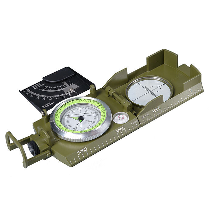На боковых частях компаса размечены 15 см линейка и линейка с масштабом 1:25000.