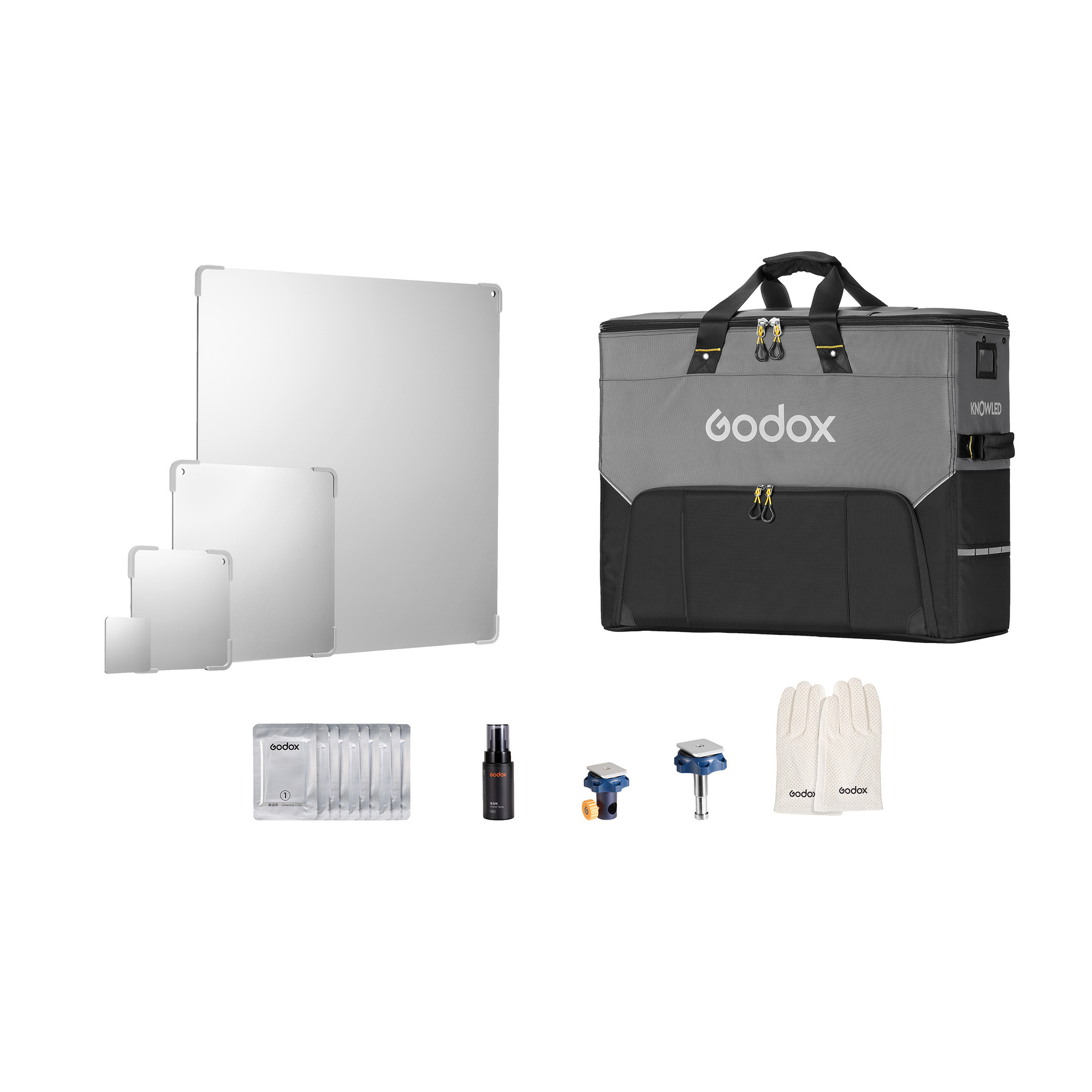 Примечание: Godox рекомендует использовать перчатки при работе с рефлекторами и очищать поверхность отражателей сразу после использования.