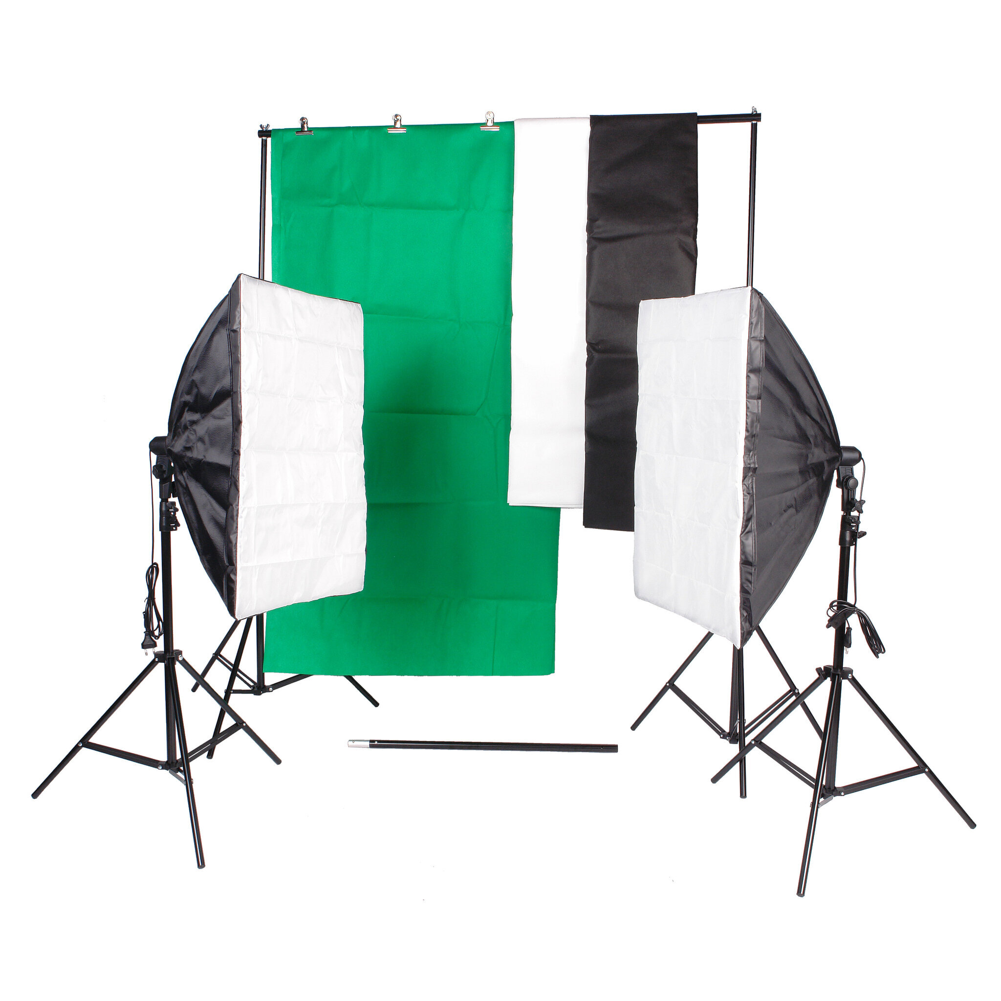Комплект позволит создать виртуальную студию с использованием технологии «хромакей» на небольшой площади даже в домашних условиях. Один источник света подсветит экран, состоящий из двух стоек с перекладиной и натянутого комплектного фона. А другой источник света отделит ведущего или актера от фона при помощи направленного светового потока.