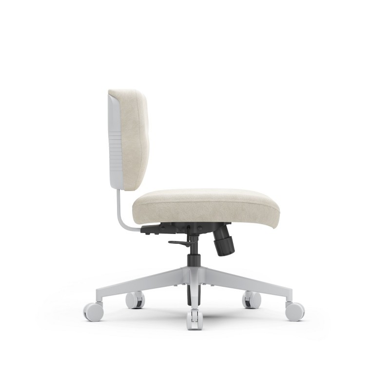 Его минималистичный дизайн идеально подходит для небольших помещений, так как кресло не занимает много места и легко задвигается под стол. Отсутствие подлокотников делает кресло удобным для людей любой комплекции, обеспечивая свободу движений и комфорт при работе.