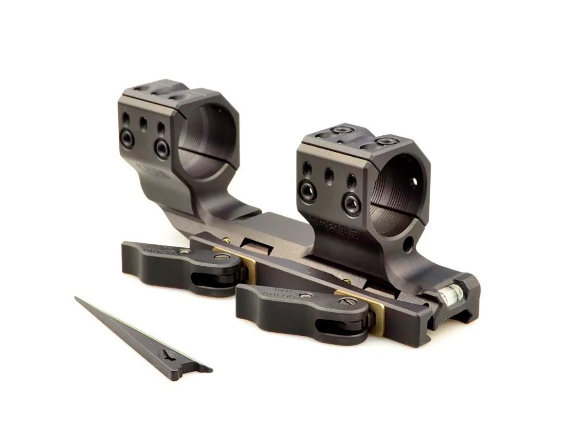 В задней части кронштейна находится жидкостный уровень для предотвращения заваливания оружия. В комплекте поставляется клин с углом 10 градусов, что добавляет дополнительного удобства и точности при установке прицела.
